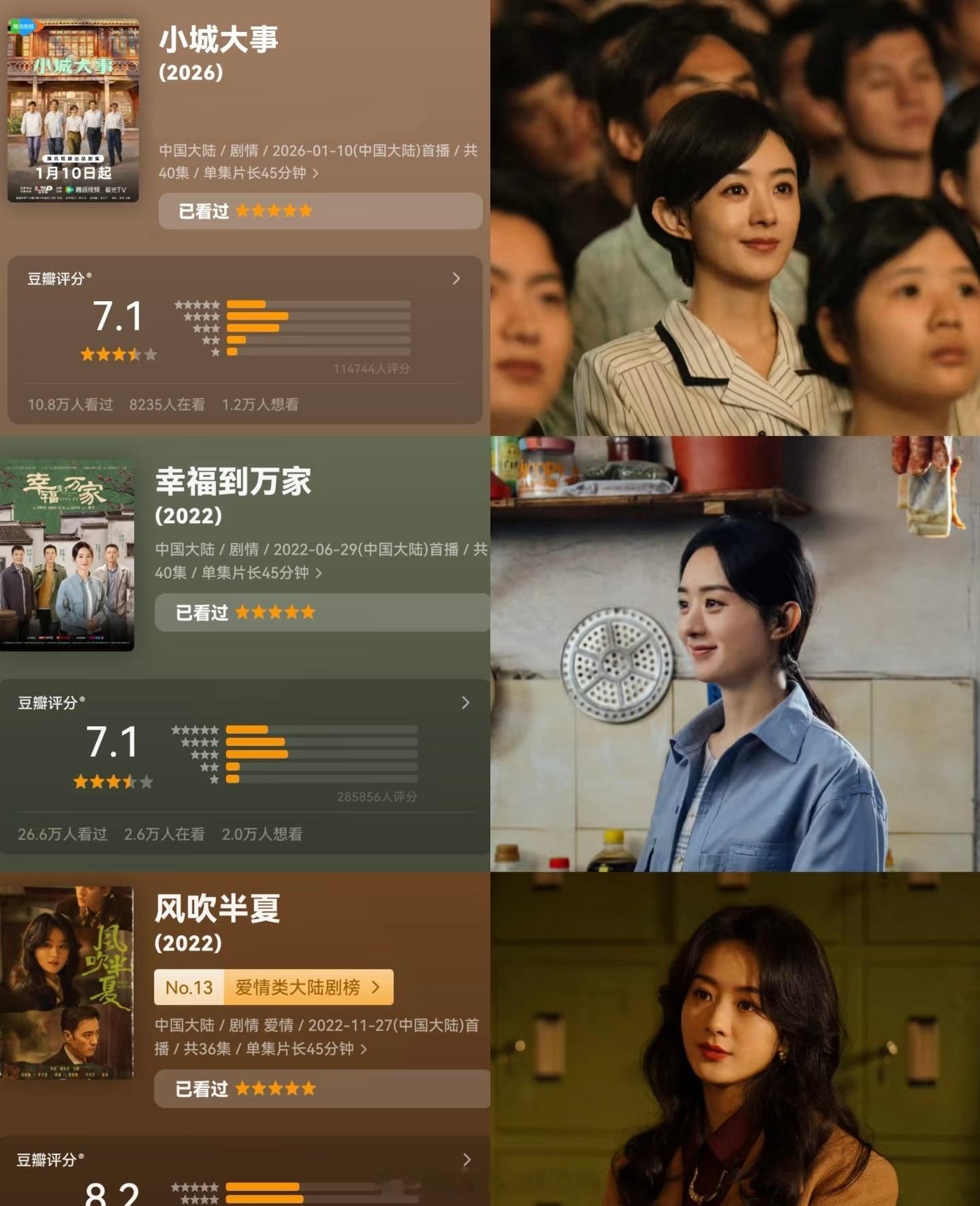 赵丽颖现实主义三部曲实绩最近连看了这三部作品 小城大事分数低了 士农工商快凑齐了