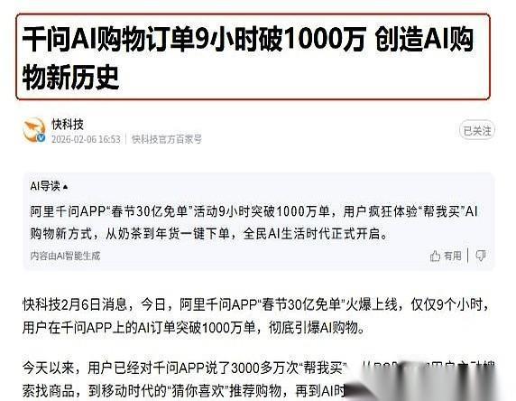 通义千问的AI,刚干了件大事。 直接砸钱,5小时请500万人喝了杯奶茶。注意,是AI帮你点的第一杯奶茶。 立马有人在屏幕后头冷笑:美国AI都在琢磨星辰大海,你们就这点出息,拿AI发优惠券? 格局小了。 你以为它在发福利,其实它在“训练”你。 一个大爷,可能连外卖软件图标长啥样都不知道,对着手机说了一句“我要喝奶茶”,半小时后,一杯热饮真就递到了他手上。这个动作,比红包的诱惑大得多。 它要的不是这一单的利润,而是用一杯奶茶的成本,在你脑子里硬生生植入一个念头——以后不管是要订票、查攻略、还是买东西,都可以下意识地打开它,问一句。 这种“肌肉记忆”,才是真正的入口。 为什么美国AI没干成这事?谷歌搞AI购物,还得回头找沃尔玛联手,因为他手里缺一张能覆盖吃喝拉撒的“网”。 而这边,快递小哥还在路上,外卖订单的后台数据已经开始滚动,电商的供应链早已就位。人家过去十几年搭好的台子,就是等今天AI来唱戏的。 所以,别再争中美AI谁高谁低了。 路子根本不一样。 一个在天上,一个在手里。一个负责让你仰望,一个负责让你马上就用上。 你说,谁会先改变所有人的生活?