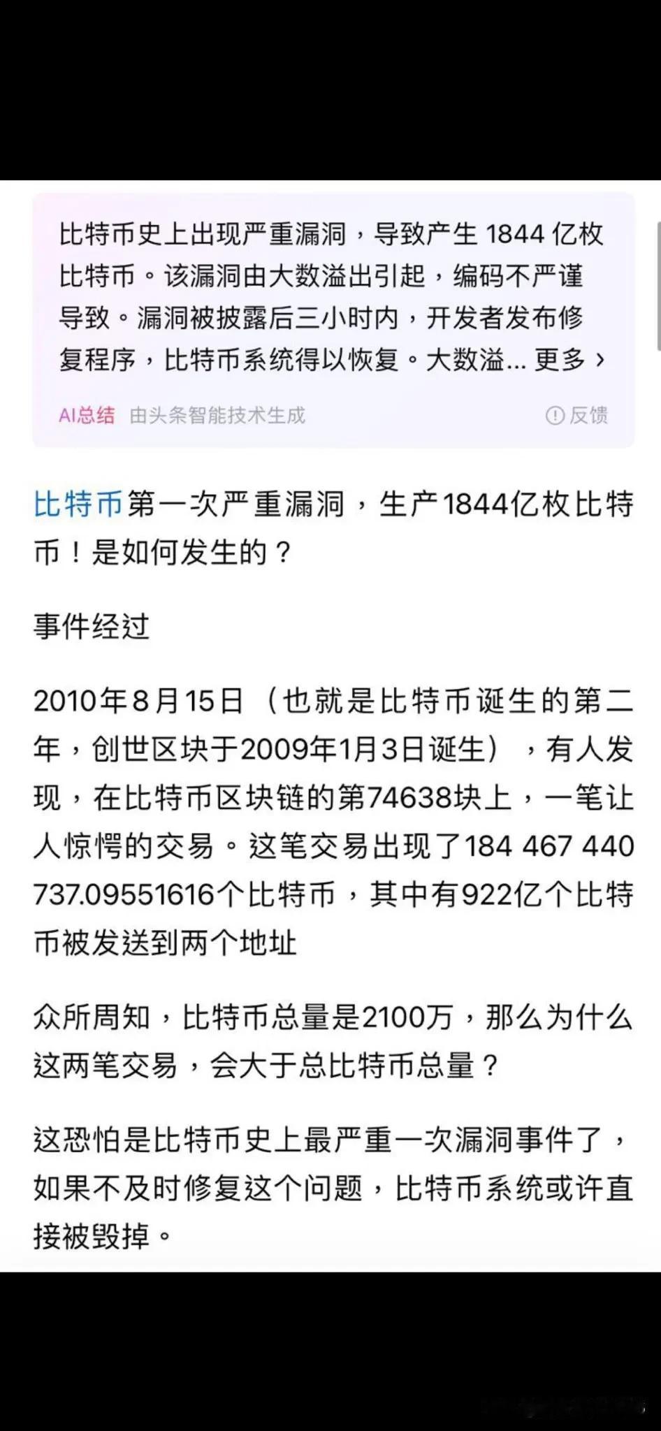 历史上最大金融骗局可能要穿帮了。 比特币第一次严重漏洞,生产1844亿枚比特币。 众所周知,一直说比特币总量是2100万,那么为什么这两笔交易,大于总比特币总量? 比特币总量可能并不是2100万枚! 那么买到的可能是废物! bithumb事件说明一个很严重的问题! 事件起因是Bithumb误发了 62 万枚比特币给用户,每个用户获得了 2000 枚比特币。但该交易所只有 4.6 万枚比特币真实储备。 说明比特币在交易所内就是无限超发的东西。 这还只是一家交易所,其他的呢?细思恐极。 最近比特币爆跌,可能也有关联。
