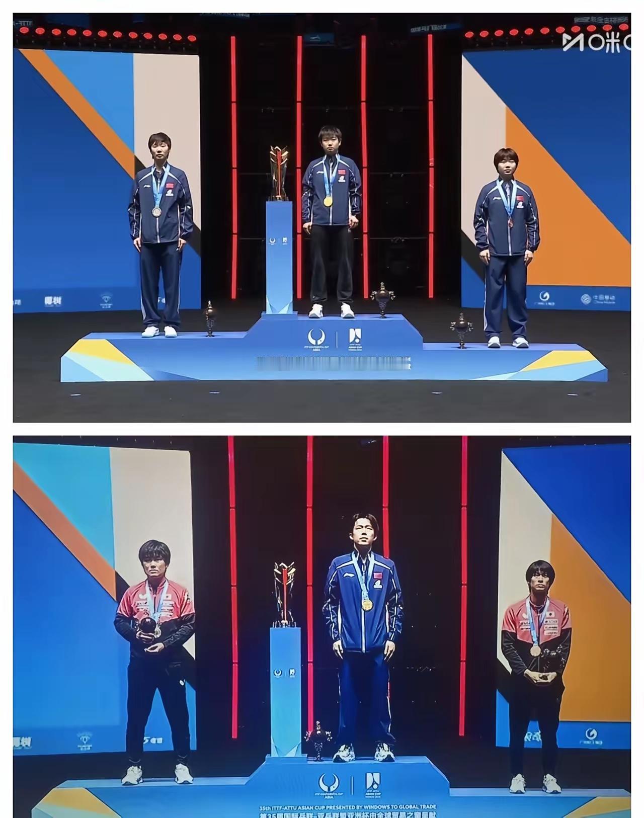 时间过得太快了,又是一年亚洲杯,今年女单还是升三面国旗,可是男单就剩一根独苗了,楚钦旁边的两个位置看着没?去年还是我们自己人,三面国旗同时升起,今年都给我卯足了劲儿冲好吗?求求了,真的不能再这样吓唬人了。