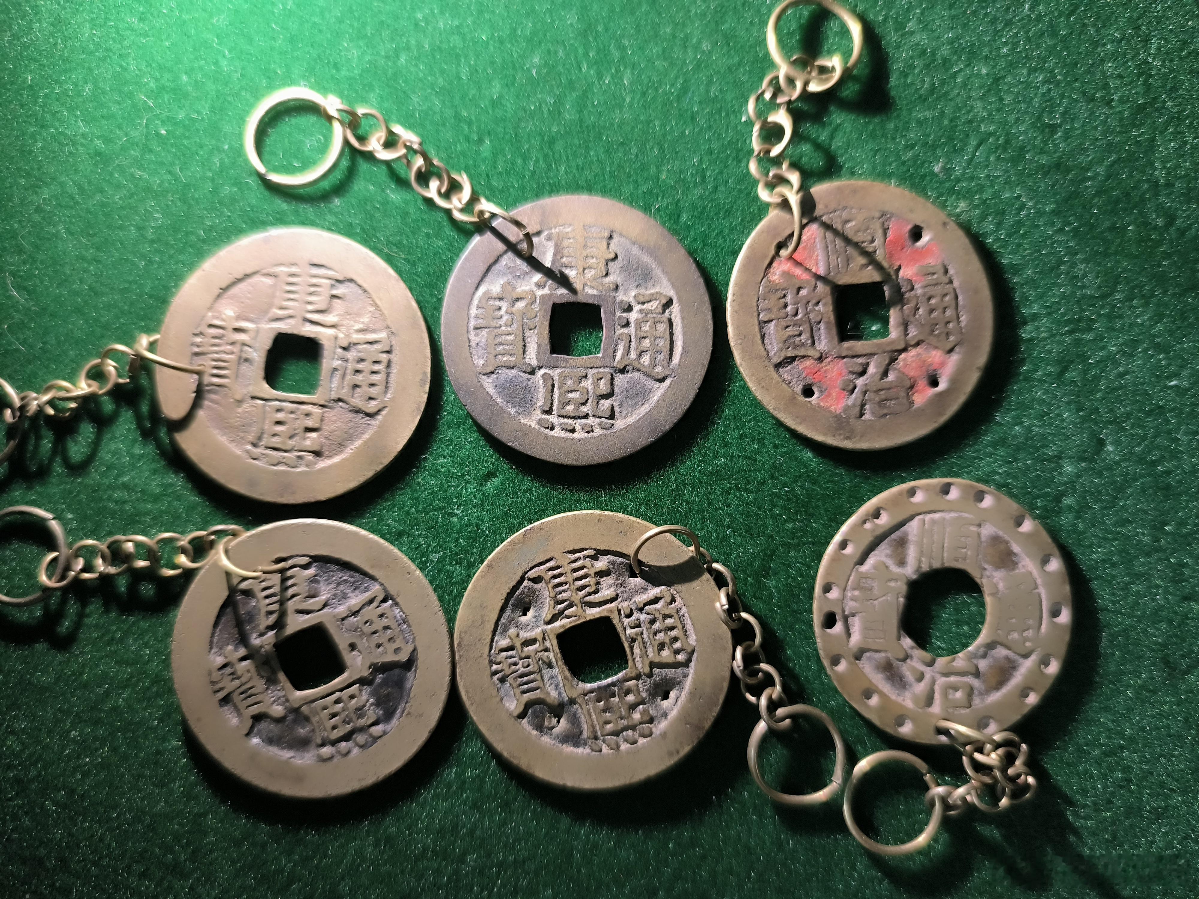 我自编的铜钱钥匙挂饰,都是真铜钱。