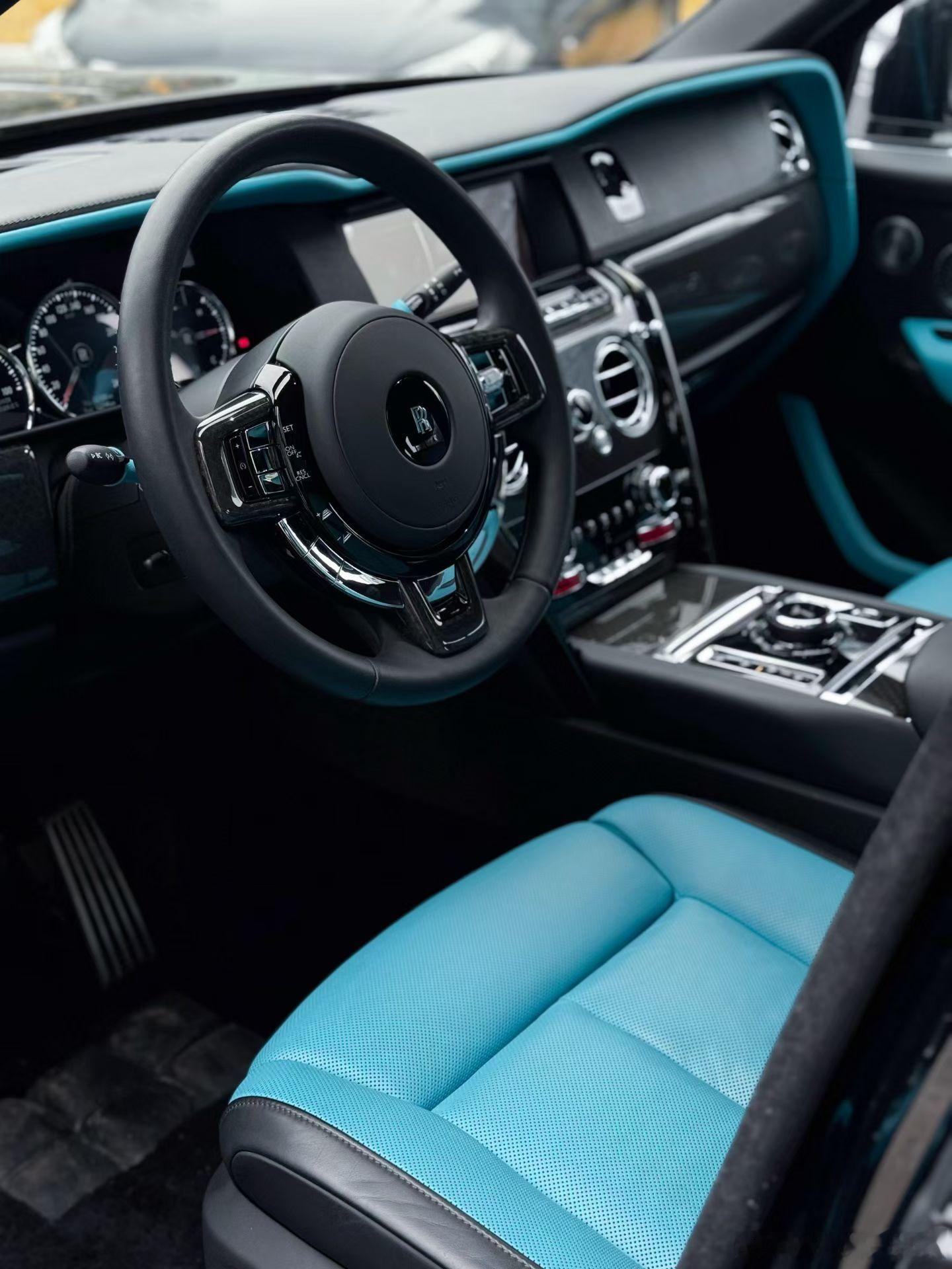 劳斯莱斯 库里南 四座BB版黑车/绿松石完美配色 选配流星顶·定制音响·中央延展·座椅通风加热·双色腰线等