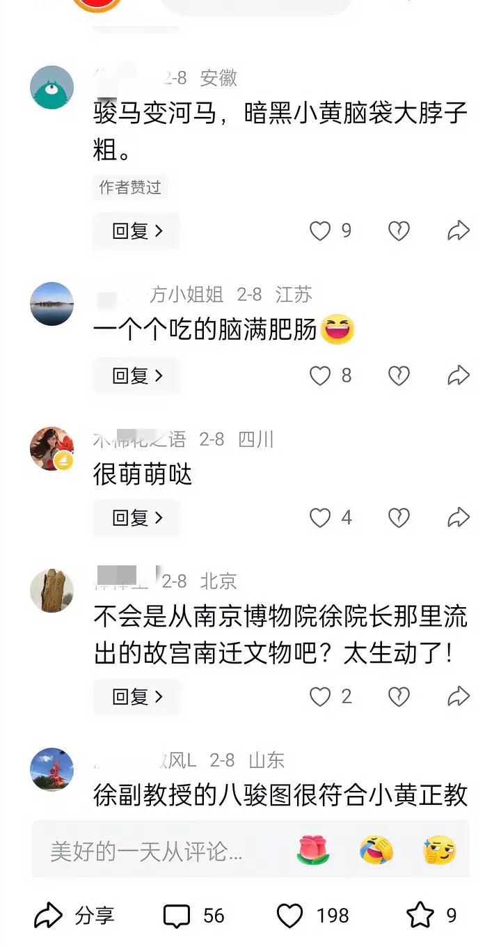 老徐发文:老徐送给小黄一幅古画,小黄爱不释手,这这画很有看头,评论区更是有趣,有一句很精辟:用美元养的马就是不一样,都是一米宽的臀部[赞] 果然高手都在评论区呀!