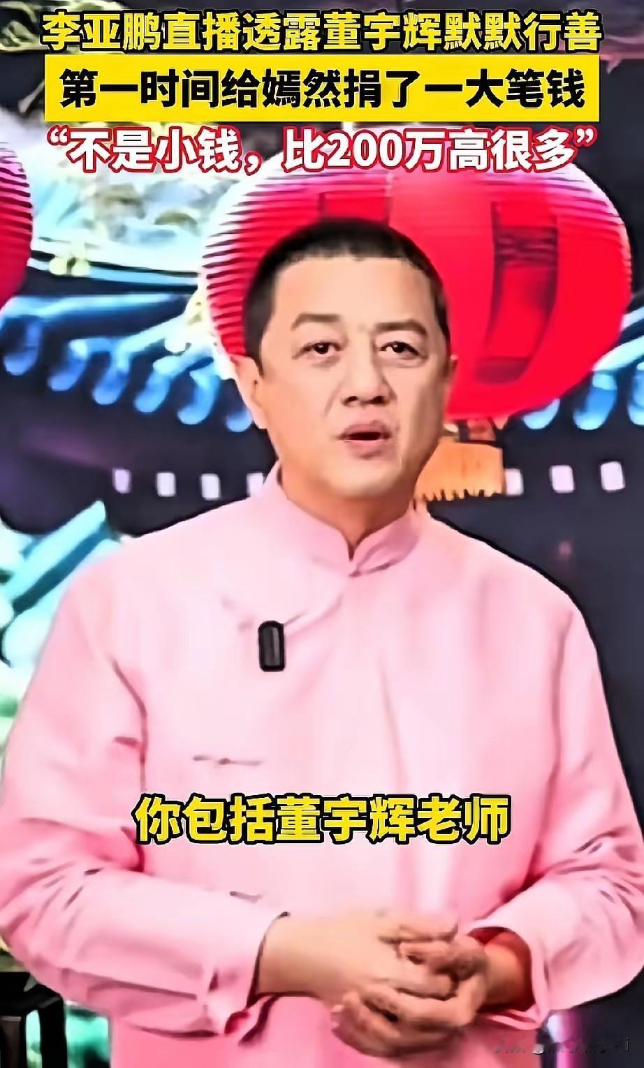 李亚鹏在直播说感谢董宇辉,以及几个明星朋友,他们捐了都不敢说。感恩亚鹏能为宇辉讲句公道话,同频的人才能看到彼此的善良正直,你们才是这个世界上的一道靓丽风景,让这个世界变得更美好,有温度,谢谢你们!亚鹏说得很中肯。为正能量发声,社会上是有一股歪风邪气,网络上不时有人带节奏,需要有人来正确引领,鹏哥好样的,自带江湖侠气!图片素材来自网上。