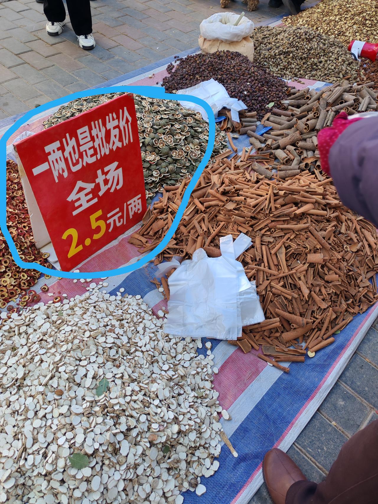 1月9日,坐标西安。这是我昨天路过拍摄的几张图片,发现随着新年临近,调味品摊生意火爆。 路边多了一个小摊,塑料布上摆放了大量的香料,一堆一堆的,品种很多,山楂,花椒,八角,香叶,草果,白芷,桂皮,小茴香等等,大概有十几个品种。 这个摊位一口价,全场2.5元一两,见图三,顾客很多,老年人们踊跃购买,过年了,煎炸烹煮各种肉类,这些调味品能除腥增香,还真少不了。 现在家里的伙食通常都是爸爸妈妈安排,年轻人忙着上班,过年安排也是老年人打理,所以买调味品的基本都是老年人。 话说回来,这些调味料2.5元一两价格与商超相比还是便宜,品种多,一站式能买齐,便宜又方便,何乐而不为? 所以快过年了,这种调味品小摊摊比起服装店理发店,生意要火爆得多。