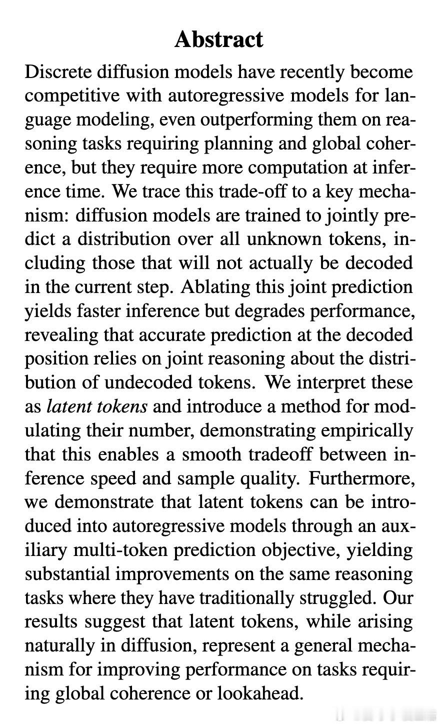 本文揭示了一个关键机制:潜Token(Latent Tokens)。这不仅解释了扩散模型的优势,还为提升自回归模型的推理能力指明了新方向。