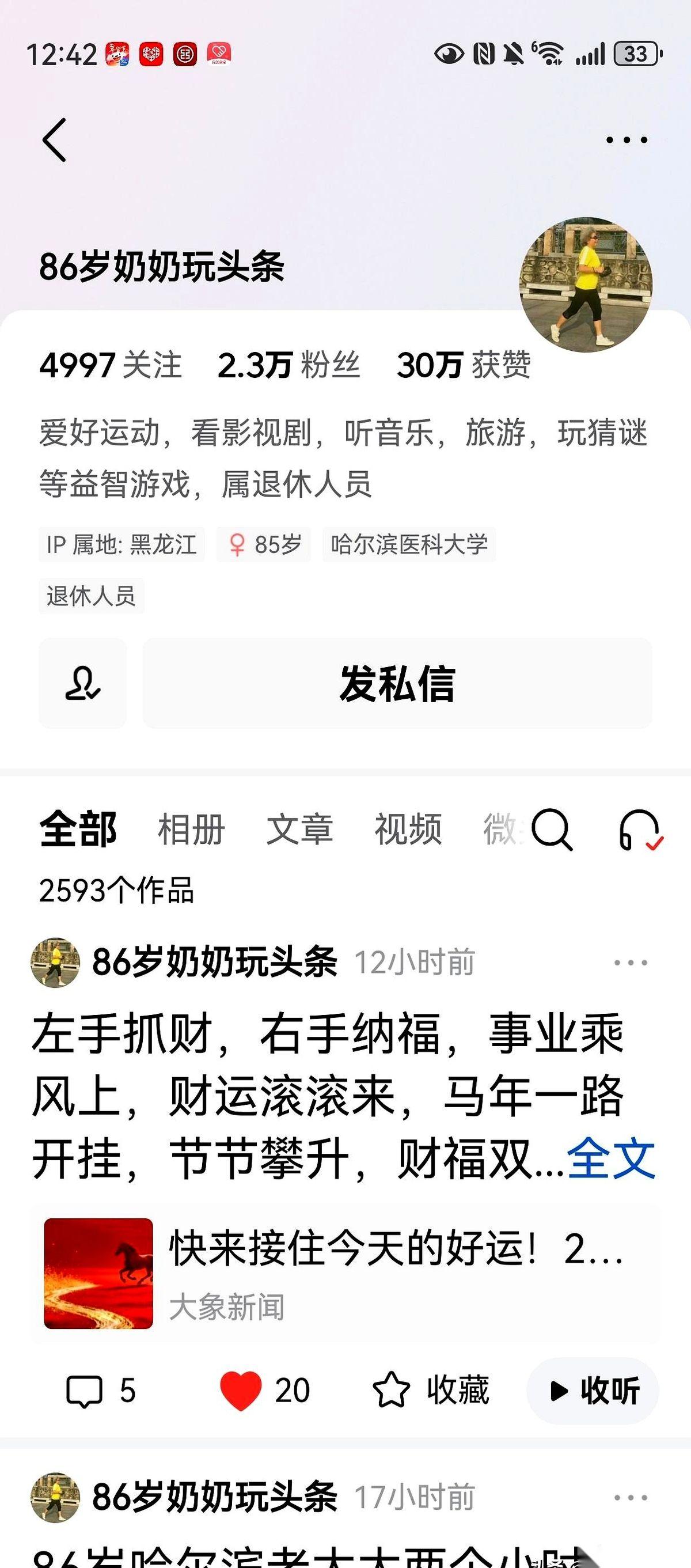 我妈打电话,特平静地跟我说,她现在查东西都用“豆包”。 我直接在办公室喊出声了。 一个86岁的老太太,自己学会用AI了。 关键是,还不是我教的。 自从三年前她开始在网上写她那些小作文,整个人就像开了挂。 手机内存不够了,自己吭哧吭哧把几千张照片分类存到QQ空间里,文件夹名字起得比我都明白。 嫌一张张发图不好看,非让我教她用美图秀秀,怎么拼图,怎么在上面加字。 我隔着电话教,有时候她搞不懂,急得不行,我也跟着上火。 但你信吗,她就真拿个小本子,一笔一划地记步骤,自己在那反复练。 直到前两天,她给我发来一张后台截图。 稿费收入:10000元。 那一刻我突然明白了。 那一万块钱,对她来说,哪是钱啊。 那是她一个86岁的老人,在这个快到让人眼花缭乱的时代里,拼尽全力为自己赢得的一枚勋章。 是她告诉所有人,甚至告诉她自己:我还行,我还没被淘汰。 现在,她每解锁一个新技能,都像个得了满分考卷的小孩,兴冲冲地跑来跟我“汇报”。 看着那个满头银发却玩手机比我还溜的老太太,我总觉得,我妈才是我们家最“潮”的那个。