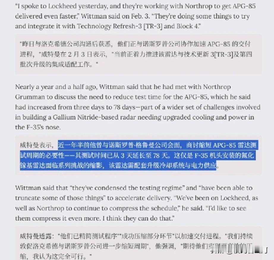 最先进的睁眼瞎. . 美国aviationtoday新闻爆料,由于新一代的APG85雷达延迟交付,已交付美军现役部队的部分 F35A 配备 APG85 雷达基座,但并未安装雷达。 F35白天版,这个歼8—2不知道可不可以一挑八?昼间战斗机和夜间战斗机这种古老的词汇又开始攻击我的记忆。跟当年机头装水泥的大英狂风ADV有的一拼了。 F35:虽然我没雷达看不见你,但是你也看不见我,我隐身!谁怕谁?不服来狗斗!