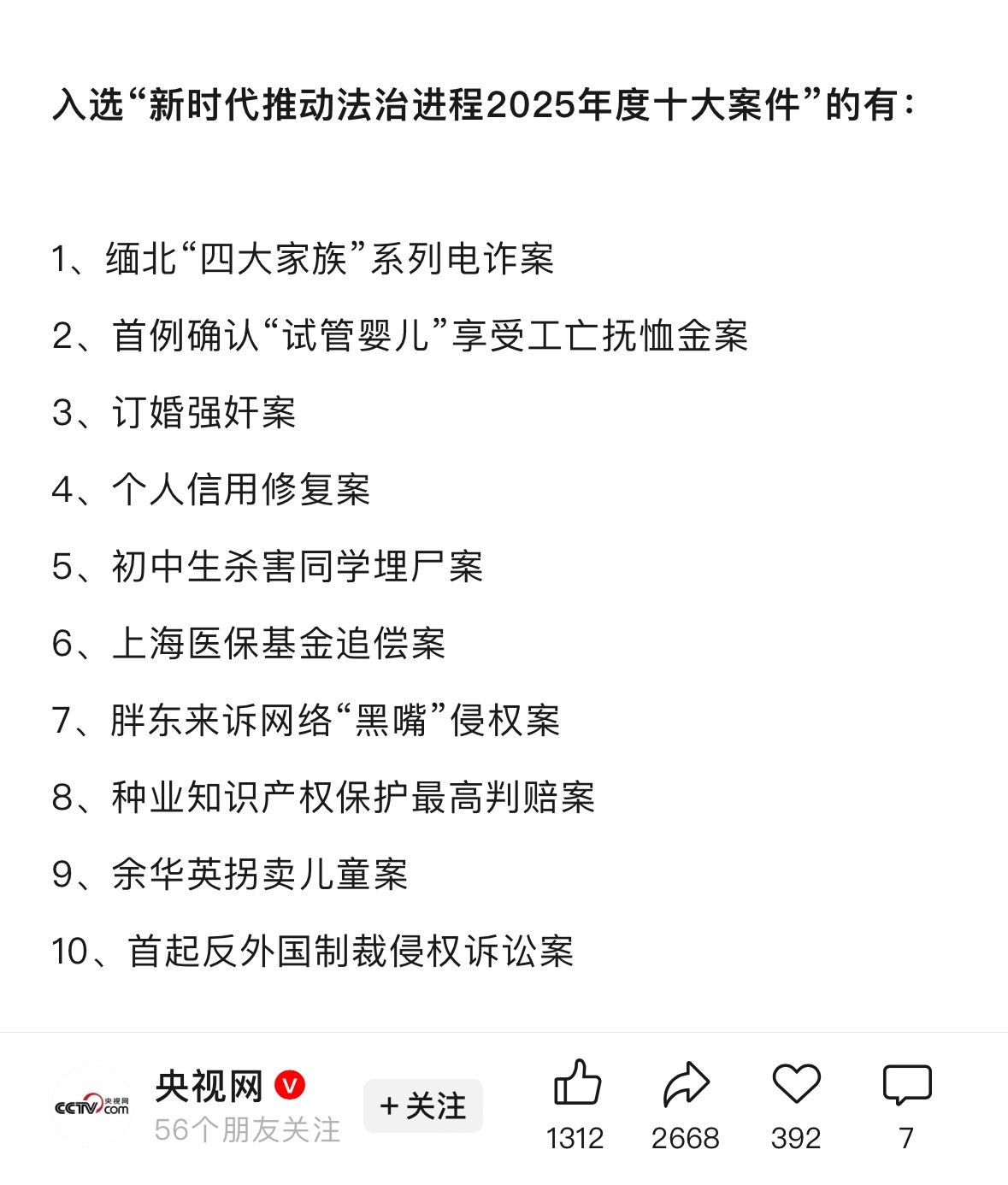 法官回应订婚强奸案男方被判3年订婚强奸案入选“新时代推动法治进程2025年度十大案件”。