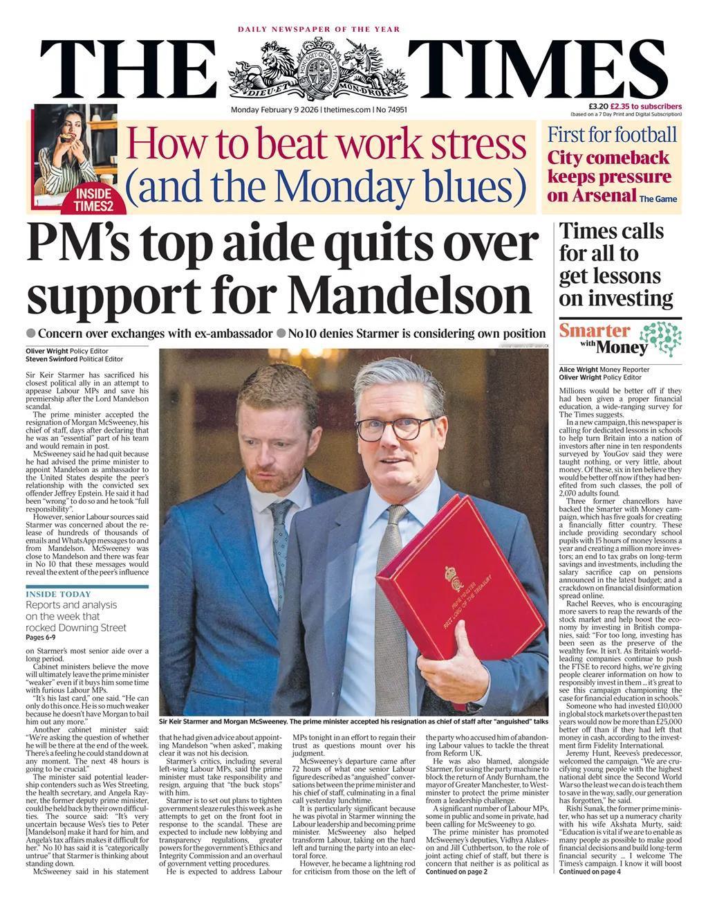 英国工党高级消息人士告诉《泰晤士报》,在首相助理摩根·麦克斯威尼辞职前,英国首相基尔·斯塔默爵士对数千条发给前英国驻美国大使彼得·曼德尔森的WhatsApp(社交软件)消息感到担忧。 因为斯塔默遭受执政党与在野党的挑战,未来自己首相的位置面临巨大的威胁。