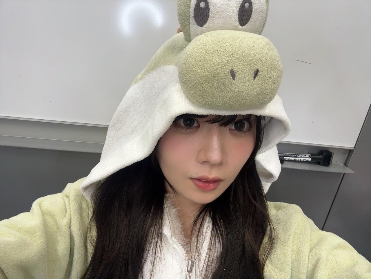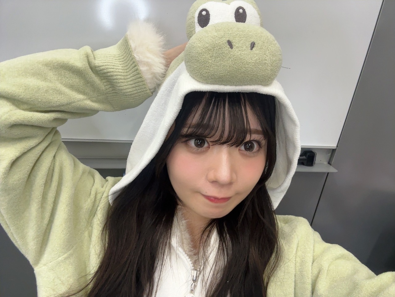 坂井新奈「オンラインミーグリは宣言させていただいた通りヨッシーを着ました!ほんとに着心地がよくて、パジャマとして愛用中。そして、リアルミーグリはバレンタインも近い事だし、バレンタインのチョコレートになりました🍫」