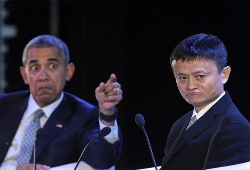 一张照片,可以做两个表情包了,奥巴马马云两人的表情好有意思。