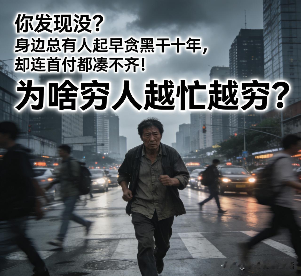 身处底层的穷人,为什么难以翻身? "你发现没?身边总有人起早贪黑干十年,却连首付都凑不齐!" 为啥穷人越忙越穷? 三座大山压得人喘不过气!第一座是"信息差",富人玩转资源时,穷人还在为省两毛菜钱跑三条街;第二座是"试错成本",创业亏五万可能让穷人全家喝西北风,对富人不过是个包钱;第三座最扎心——"认知闭环",就像井底蛙觉得天只有井口大,穷人思维固化后,连跳出来的机会都看不见! 你身边有这样的例子吗?评论区聊聊你见过的"穷人困局"→点赞收藏,下期教你怎么破局!穷人的真实困境 穷人的真实窘境 底层人生存困境 穷人为啥一直穷