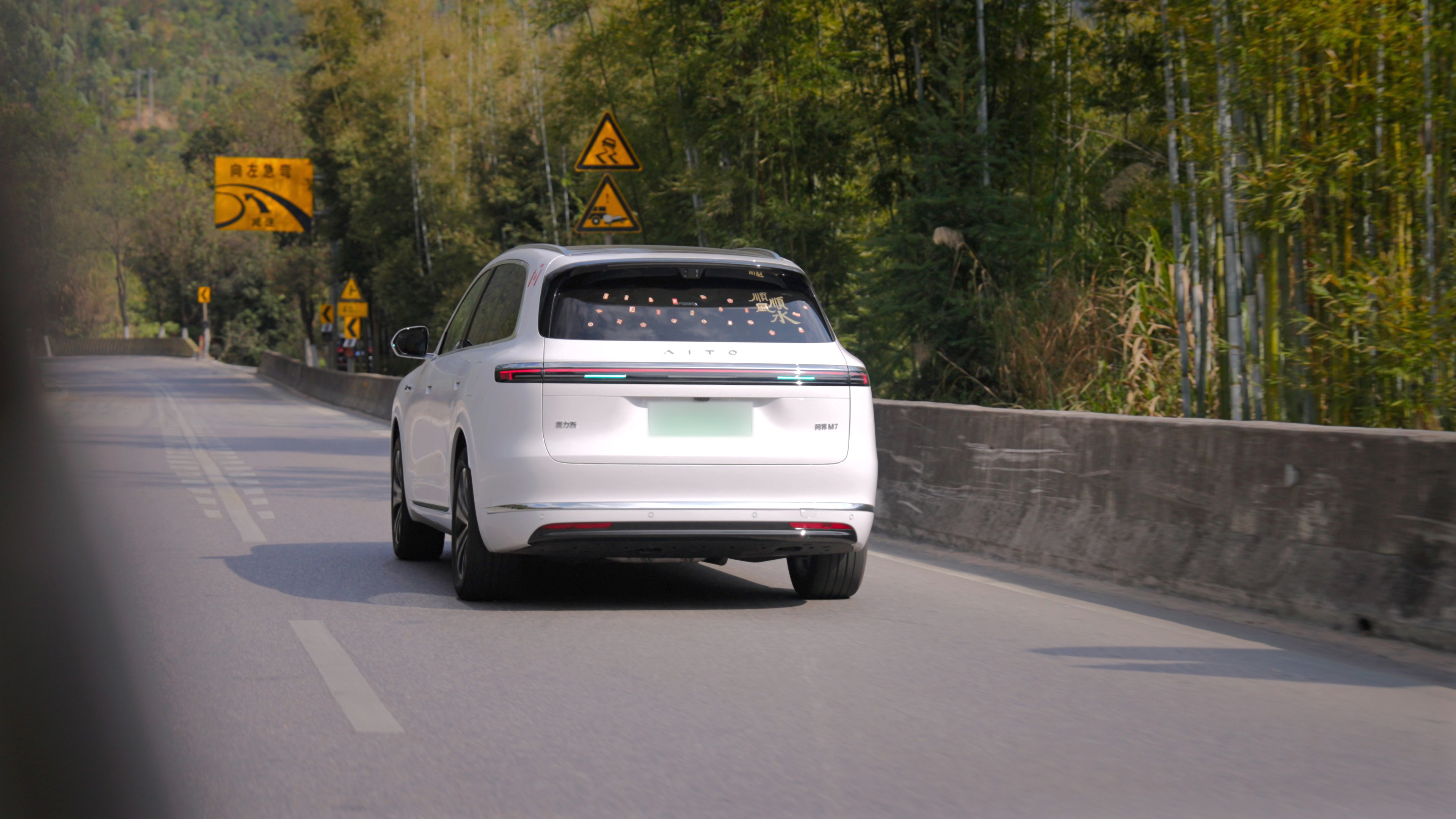 开问界M7回家,特意给车贴上了“年味”,小蓝灯一路护送,华为ADS 4.0 稳稳的往家的方向前进,而我只需惬意地看着熟悉的风景一点点清晰。