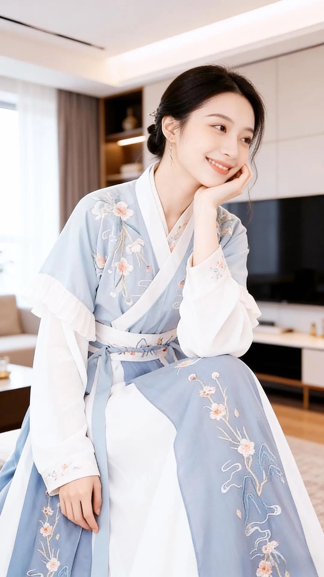 古风少女,笑靥如花,汉服飘逸,韵味十足。