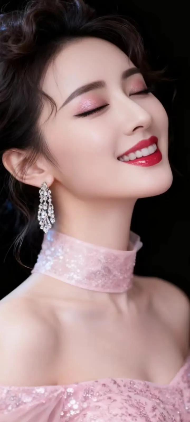 复古旗袍美人,红唇与珍珠耳环相映成趣,优雅动人。