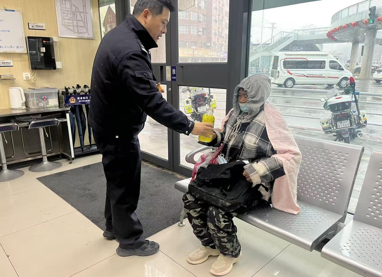 2月9日上午8时,掇刀一中队民警带领辅警在雪天开展巡逻工作时,发现一名老人坐在路边无法行走。民警立即上前将老人扶至岗亭休息并了解情况:老人从麻城镇雷集村前往掇刀转盘途中,因雪天路滑不慎摔倒,遂坐在路边休息。随后许元同志联系掇刀派出所民警,将老人安全送回。