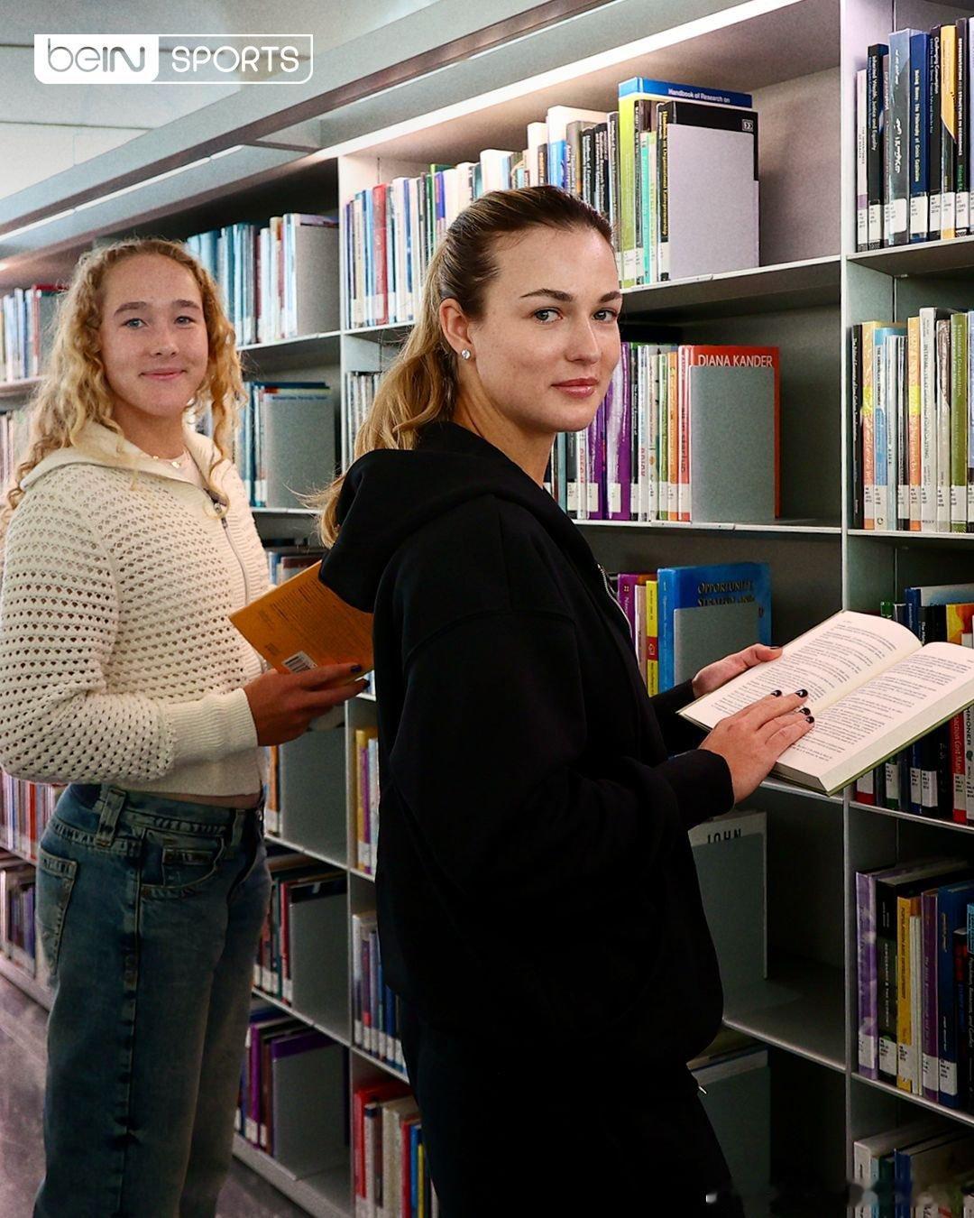 卡琳斯卡娅🤝米拉·安德列娃!更多昨天Anna和Mirra在卡塔尔多哈参加赛前活动的照片(来自BEIN体育)两个人去图书馆看书了啊,Mirra看着比Anna高一点吧wta