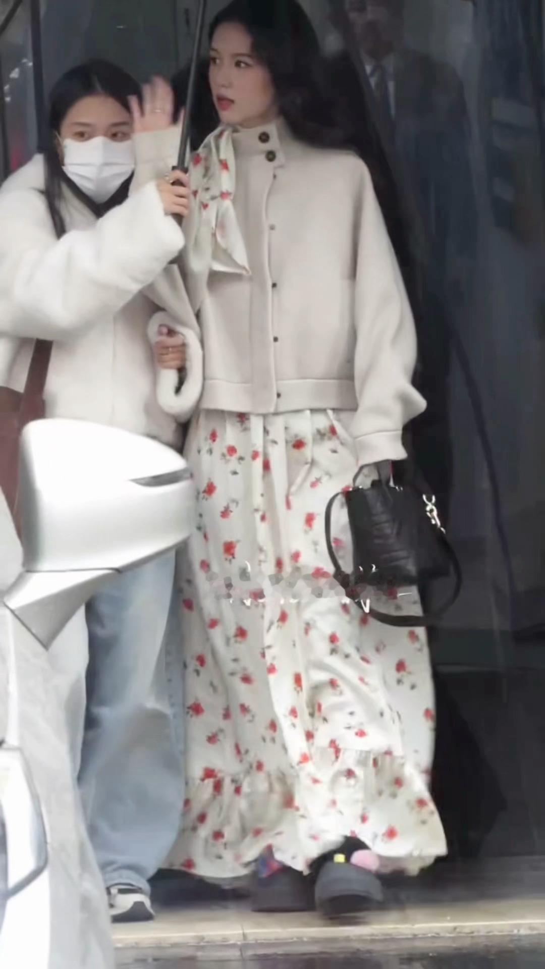 雨爱的秘密☔️大雨中打了很久招呼的也子🥺🥺周也白色碎花裙look周也下雨也