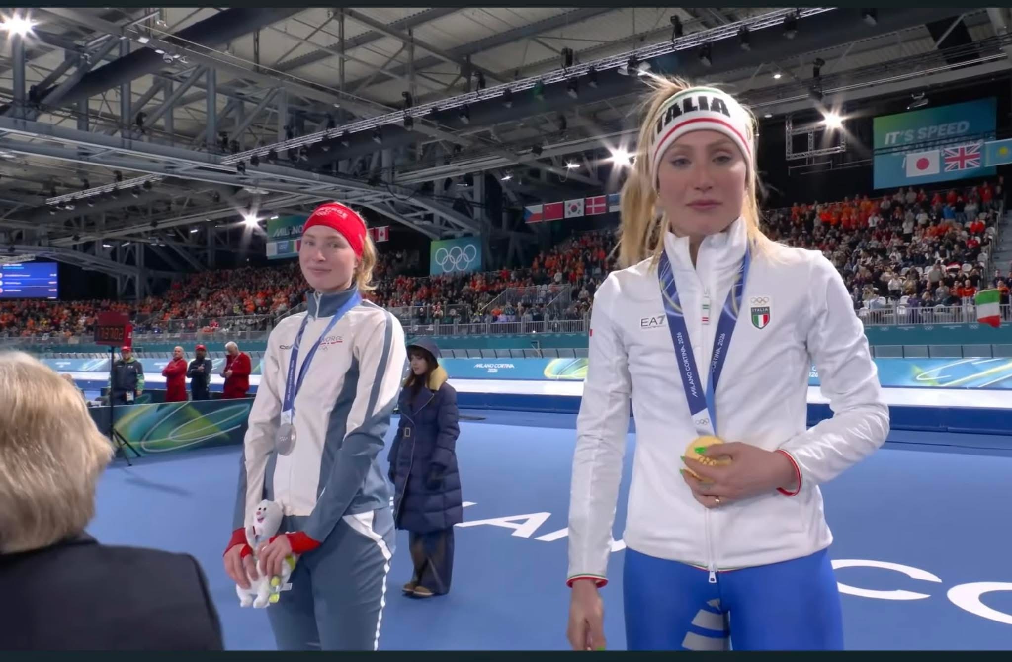 佢喺女子3千米速度滑冰比賽以 3分54秒28 刷新奥運紀錄,亦都係呢個項目歷來第一位意大利女運動員奪金。🎉