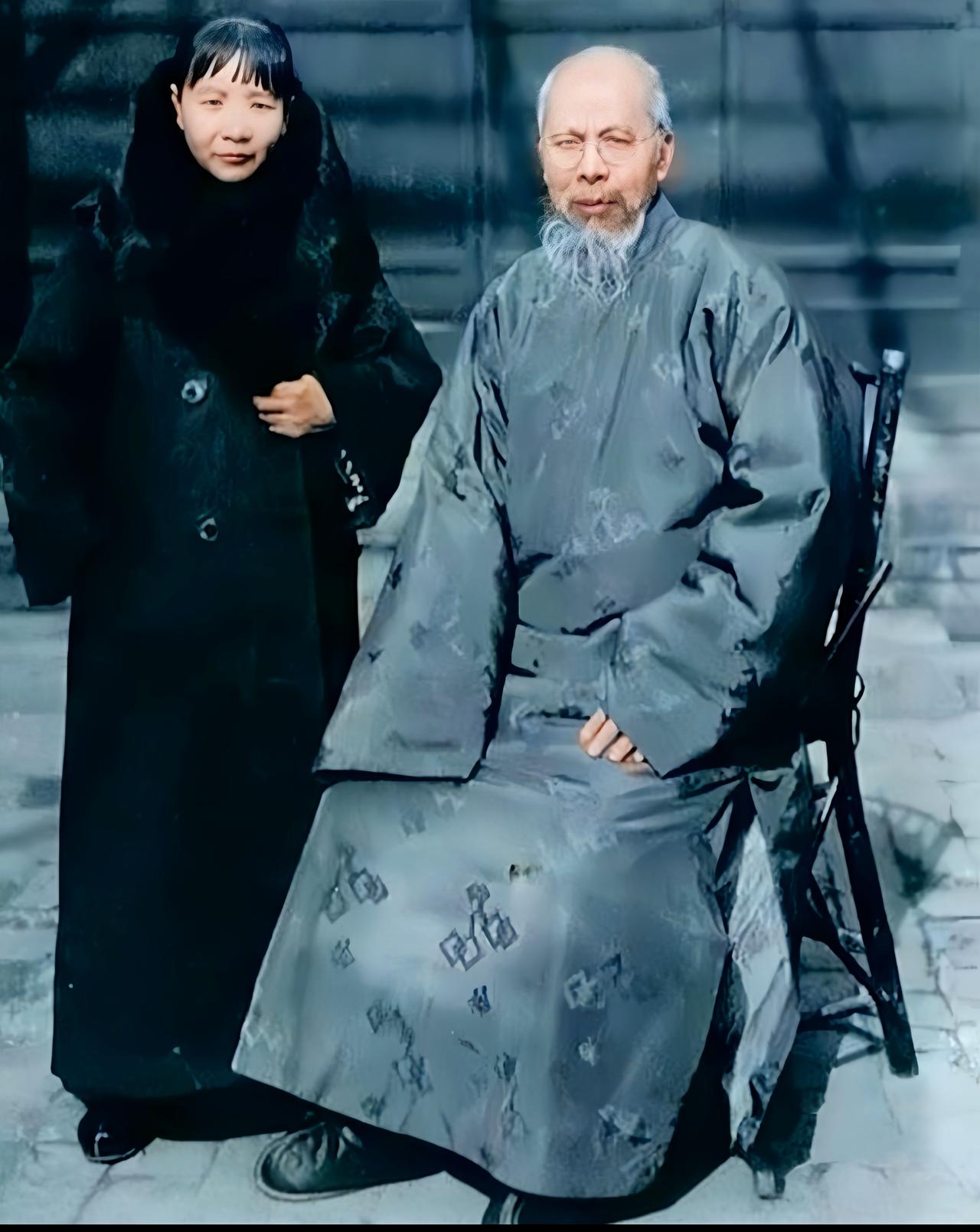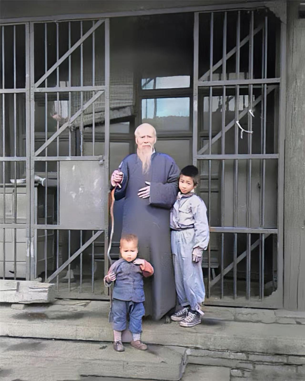下图一是齐白石祖孙三代的合影,其中依偎在齐白石身边的大孩子是他最小的儿子齐良末,他跟前的小孩儿是他的孙子齐灵根。 这一年齐白石已经84岁了,这意味着他是在75岁那年有了最小的儿子齐良末,大概也是因为得子时年岁过于大了,所以在取名时,他为儿子取的名字是齐良末,末,即末尾,以为“最后的”。 齐良末是齐白石的副室胡宝珠所生,胡宝珠是齐白石正室陈春君代他聘到的副室,她嫁给齐白石时年仅18岁,而当时齐白石已经年近60岁。 关于胡宝珠,齐白石自己在自传中这样描述其“来由”,他说:“到了中秋节边,春君来信说:她为了我在京成家之事,即将来京布置,嘱我预备住宅。我托人在龙泉寺隔壁,租到几间房,搬了进去。不久,春君来京,给我聘到副室胡宝珠,她是光绪二十八年(1902年)八月十五中秋节生的,小名叫做桂子,十年十八岁。原籍四川鄷都县转斗桥胡家冲。” 从此段自述中可知,胡宝珠并不是正室的婢女,后人如此传,多半是为了诋毁齐白石,说他吃“窝边草”。 1941年农历一月十四日,陈春君在湘潭老家辞世,享年79岁。几个月后,齐白石就设宴,并邀请胡佩衡、陈半丁、王雪涛等亲友为证,举行胡宝珠立继扶正仪式。 相比为齐白石生下五个孩子的陈春君,胡宝珠为齐白石生下了七个子女,分别是四子:齐良迟(齐白石第四子)、齐良已(第五子)、齐良年(第六子)、齐良末(第七子),三女齐良怜,齐良欢,齐良芷。 从胡宝珠所生育子女的数量便可知,她非常得宠。可惜,被扶正后仅仅两三年,胡宝珠就因病辞世了,享年42岁。 关于胡宝珠之死,齐白石在自传中也有具体的讲述:“民国三十二年,我八十三岁。自从卢沟桥事变至今,已过了六个年头,天天提心吊胆,在苦闷中过着苦难日子……我心里正在愁闷难遣的时候,偏偏又遭了一场失意之时:12月12日,继室胡宝珠病故,年四十二岁。宝珠自十八岁进我家门,二十多年来,善事我的起居,寒暖饥饱,刻刻关怀。我作画之时,给我理纸磨墨,见得我的作品多了,也能指出我笔法的巧拙,市上冒我名的假画,一望便能辨出,我偶或有些小病,她衣不解带地昼夜在我身边,悉心侍候。春君在世时,对她很是看重,我也处处不忘礼节,所以妻妾之间,从未发生龃龉。我本想风烛之年,仗她护持,身后之事,亦必待她料理,不料她方中年,竟先衰翁而去。怎不叫我洒尽老泪,犹难抑住悲伤哩。” 齐白石的自述中,并未写出继室胡宝珠之死因,只说病逝。坊间传闻她是 “死于难产”,这件事情,曾被齐白石后人予以了否认,实际上,胡宝珠死时,齐白石已经八十三岁,他早已没有能力让胡宝珠再怀孕。他们最小的儿子齐良末生于1938年,即胡宝珠38岁那年。 胡宝珠死后,早已习惯身边有人的齐白石动了再娶的心思,但终未娶成。有人说,这背后的原因与子女的阻拦有关。 但晚年的齐白石虽未再娶,但身边一直有年轻女性照顾。齐白石93岁那年辞世,走时身边只有家人陪伴,这,大概是一辈子习惯女人陪伴的他,最大的遗憾之一了。 胡宝珠辞世时,齐良末年仅4岁,因怜惜他幼年丧母,齐白石便一直将他带在身边悉心培养。 齐良末年8岁时,齐白石就开始手把手地教他绘画,还专门为他制作了作画的范本。10岁时,齐白石教他画的《钟馗捉鬼图》备受人称赞。 1957年,即齐良末19岁那年,93岁的齐白石辞世,好在此时的齐良末已经可以凭借父亲教他的画艺谋生了。在齐白石多年的悉心教导下,他对中国画的构思极富特色,他画的鱼、虾、昆虫等,在画功上与齐白石极为相似,也因此,他被后世称之为“小齐白石”。 图二为齐白石与胡宝珠;图三为齐白石为胡宝珠扶正设宴时留影