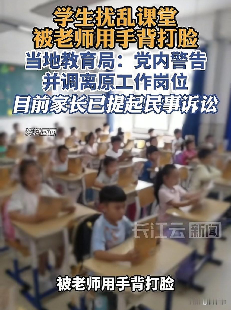“没完没了了!”小学老师在课堂上制止一名捣乱的学生,用手背打了他一巴掌,事发后当天老师就向学生和家长道了歉,并且获得他们的谅解,谁知第二天家长就反悔,向教育局投诉并报警,教育局调查后给予老师警告处分,并撤销了他的班主任职务,民警则认为老师的行为是以教育为目的,并不是故意,所以没有对他进行处罚,家长对这样的结果仍不满意,又申请了复议,还要对老师进行索赔。 网友一致批评这位家长,老师动手教育孩子是方法欠妥,但你这样不依不饶,以后你家的孩子谁还敢管理,谁还原意管理,最后影响的还是孩子得教育!