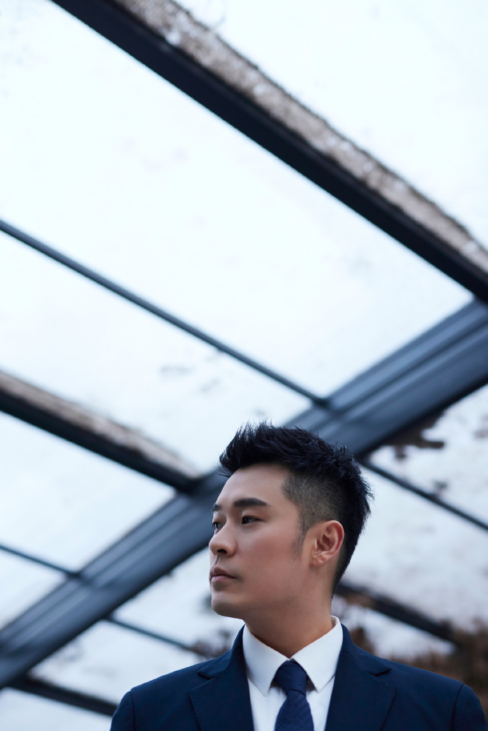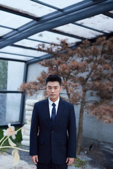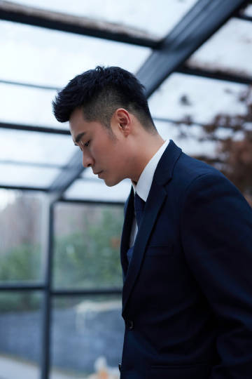 陈赫氛围感写真释出,身穿黑色西装的陈赫站在玻璃房里,瘦了10斤的陈赫看起来很精神
