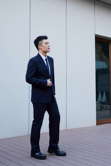 陈赫氛围感写真释出,身穿黑色西装的陈赫站在玻璃房里,瘦了10斤的陈赫看起来很精神了