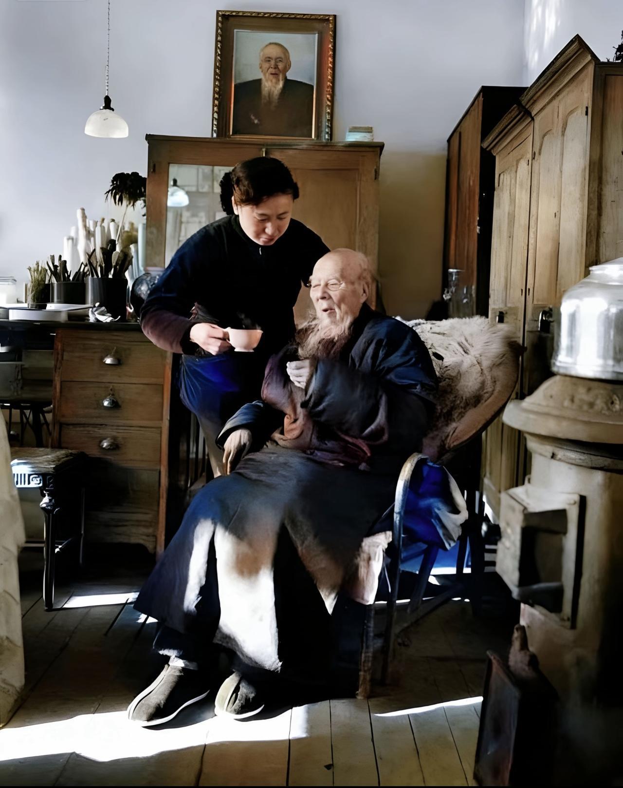 下图是齐白石93岁在家中的一张抓拍图,看得出来,此时正值冬日,他的家中取暖设备已经打开,而他也被家人推到了阳光下晒太阳。相比旁边的家人,此时的齐白石穿得非常多,脚上穿着棉鞋,身上穿着大长棉袄,唯独头上没有戴帽子。 齐白石不戴帽子却穿着厚棉鞋,遵循的是养生里头讲的“寒头暖足”原则。 齐白石曾自己总结了长寿秘诀,但后人发现:他总结的长寿秘诀,他自己并没有做到,比如戒色、戒酒这些。后人总结:他真正的长寿秘诀,是因为对绘画挚爱而养成的一些习惯。 比如,他曾为了让自己能一直“画到老”,一日不间断地坚持锻炼,他六十多岁的时候还经常爬山出游,后来爬不动了,就改为针对性地锻炼臂力和手腕力量。 因为绘画需要用脑,而肉食又往往会导致脑子“卡顿”(吃完肉大脑会被消耗掉更多能量),所以他每日坚持以清淡饮食为主,尤其多吃白菜。齐白石有多喜欢白菜呢?有一次,他出去玩,看到有人有一车白菜,品质非常好。于是,他便给人画了一幅白菜,然后用这幅白菜换了一车白菜回来。齐白石的很多画作,画的都是白菜。 为了实现“画到老”的理想,他每天坚持画画,有一次,他高烧了,他的弟子李可染见了劝他多休息,可他却坚持起来画虾,一画就画了六十只,画完之后,他的高烧竟也退了。他后来戏称“虾有退烧的功效”。因为始终笔耕不辍,齐白石去世前几日,竟还能起来画画,真真是实现了“画到老”的理想。 而运动、清淡饮食、笔耕不辍(坚持做事),不正是真正的长寿秘诀吗?可见,齐白石自己没发现的秘密,终是被眼睛雪亮的世人察觉到了。 所以,归到根本处,真正的长寿秘诀是坚持做最喜欢(最擅长)做的事。当然,前提是这个“事”得是“好的”。一个人有自己最喜欢(最擅长)的事,便会主动去为自己能多做这件事而做一些必要的小坚持,这些小坚持,才是真正的长寿秘诀。