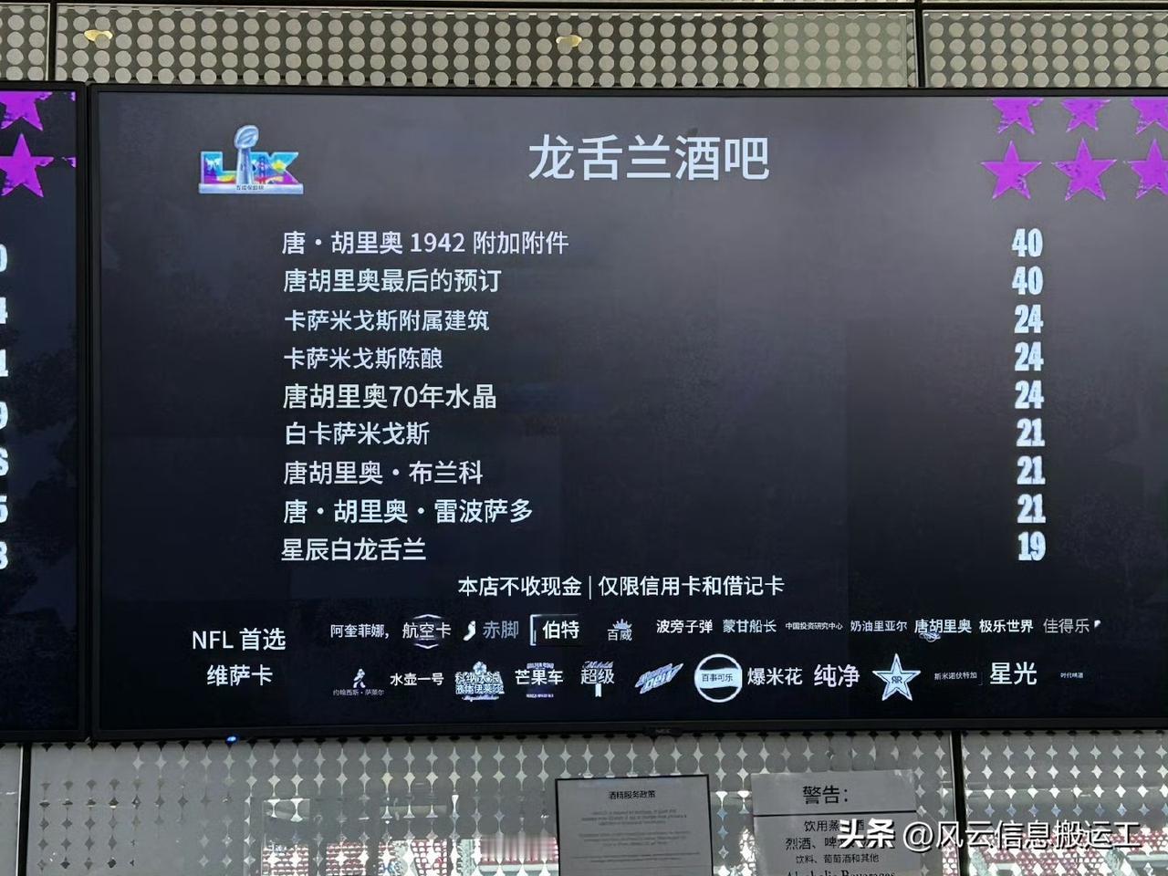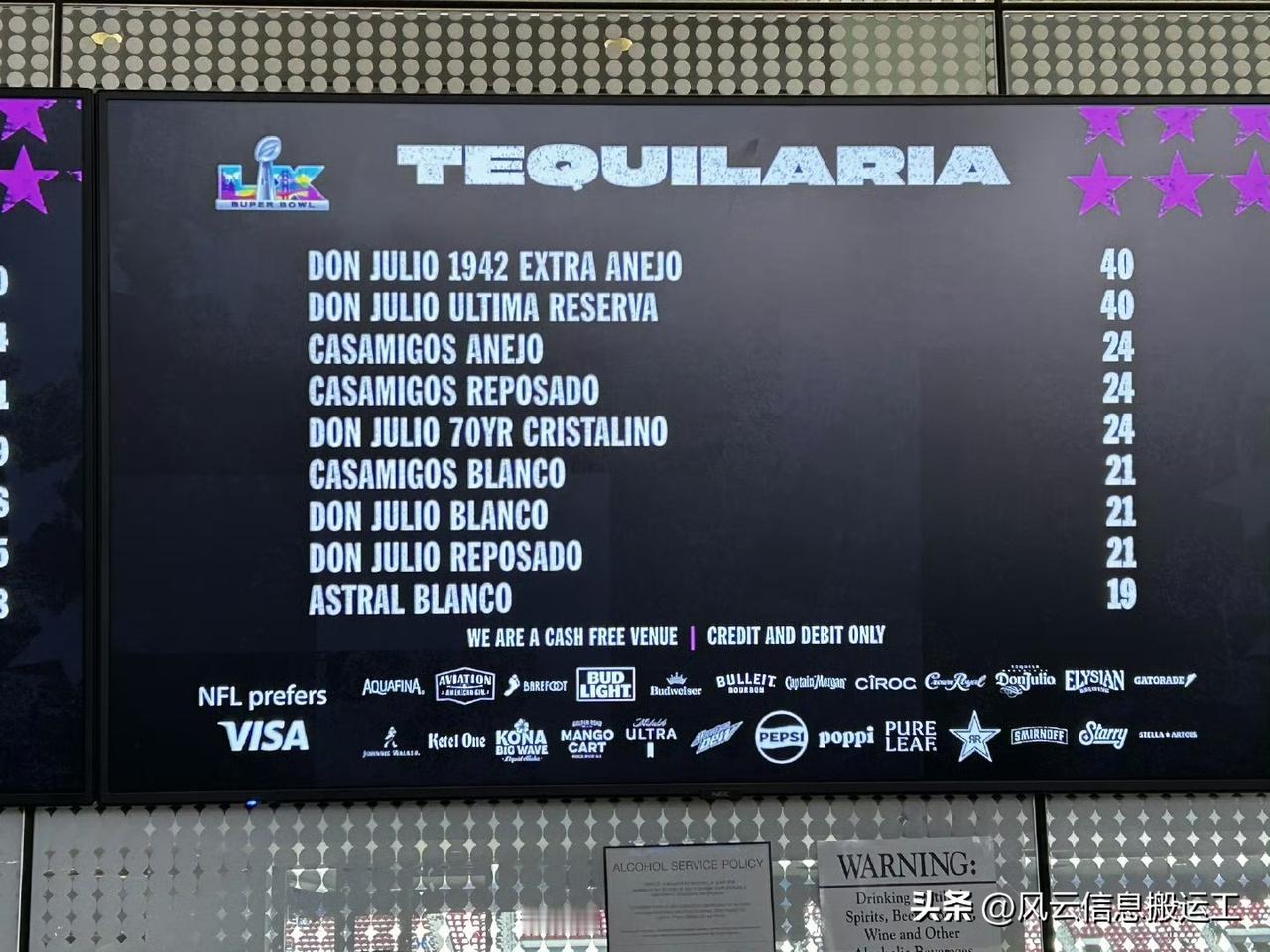 美国超级碗上的部分酒水价格!