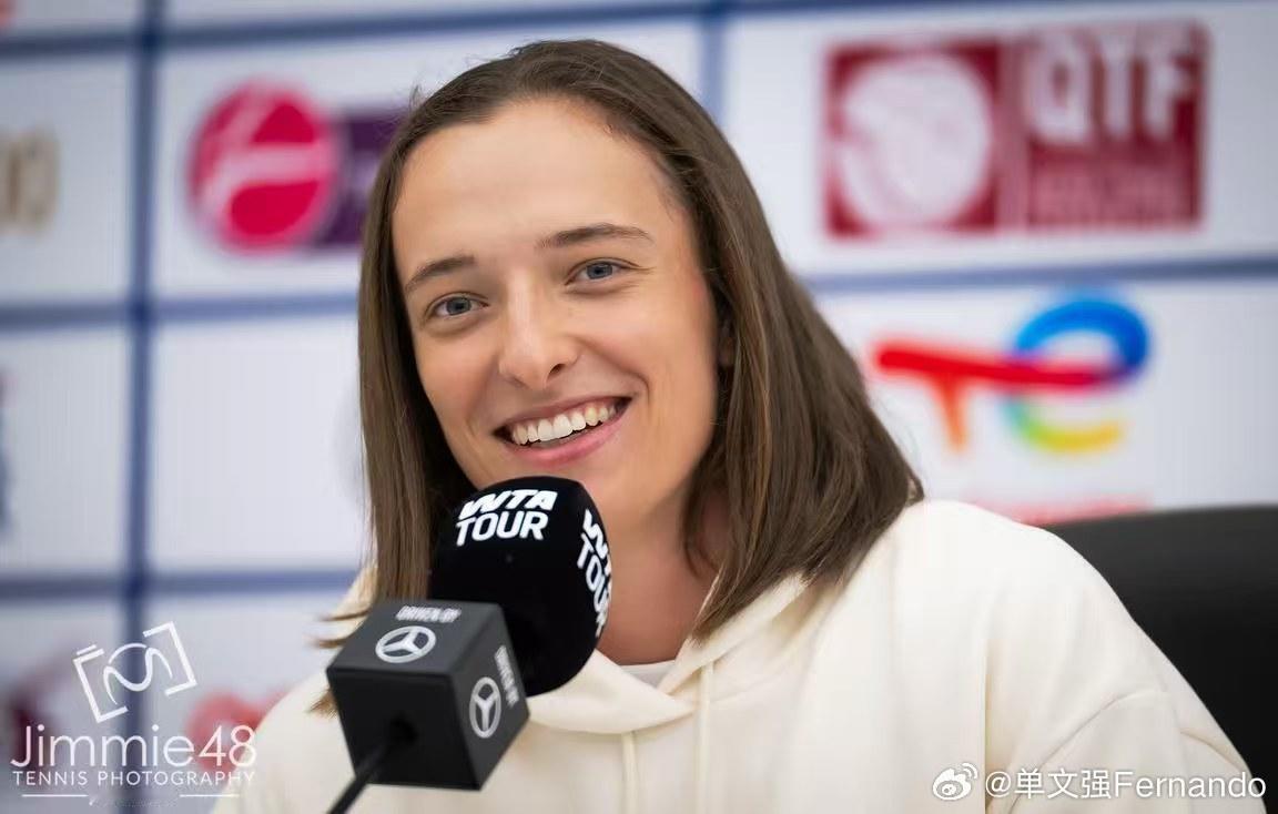 斯瓦泰克!多哈1000赛媒体日!Iga聊了聊自己发球这方面的一些训练:'Getting the toss more stable, and twisting more…There are some different (things) that I'm doing, but at the same time moving the elbow more back or getting the hips more''I’ve been working on my serve, forehand, and my footwork'也就是抛球要更稳定、手肘更往后点、多用点屁股……最近主要就在攻克发球、正手和脚步这三方面wta