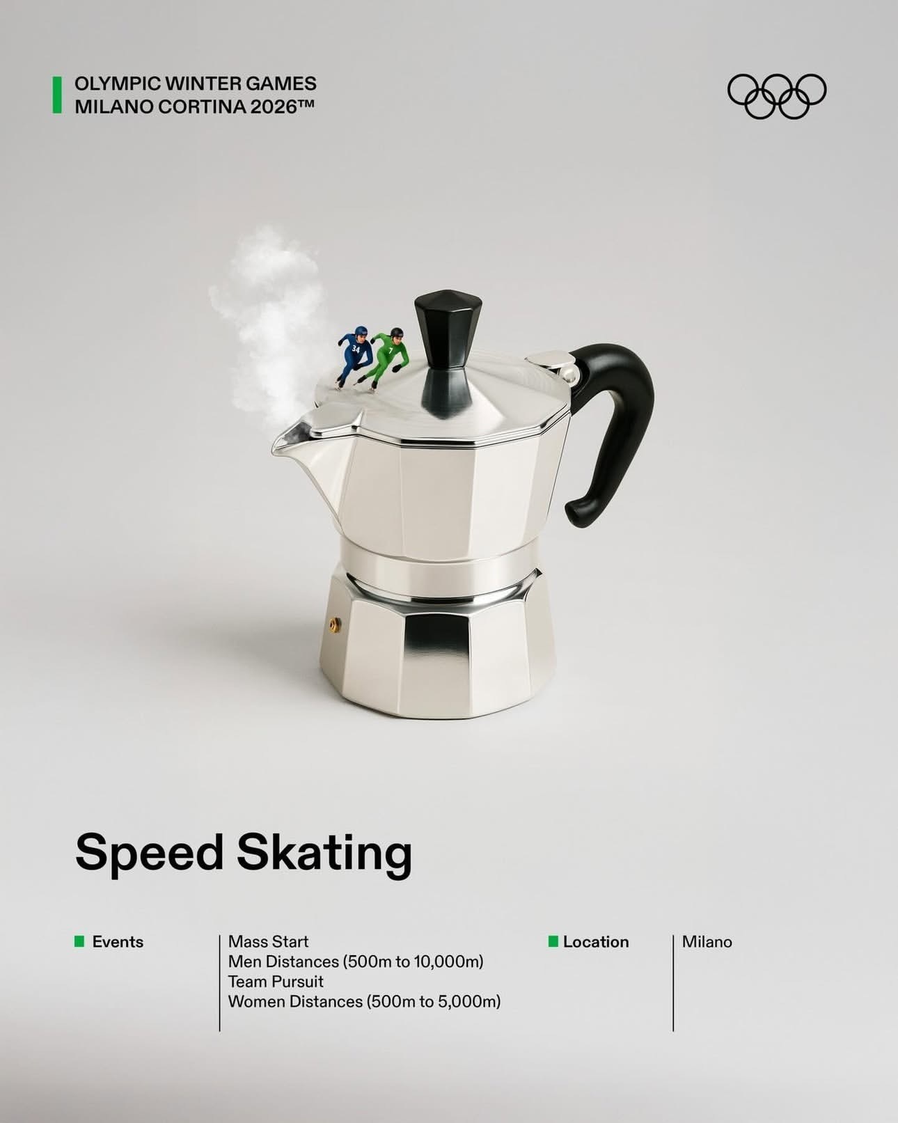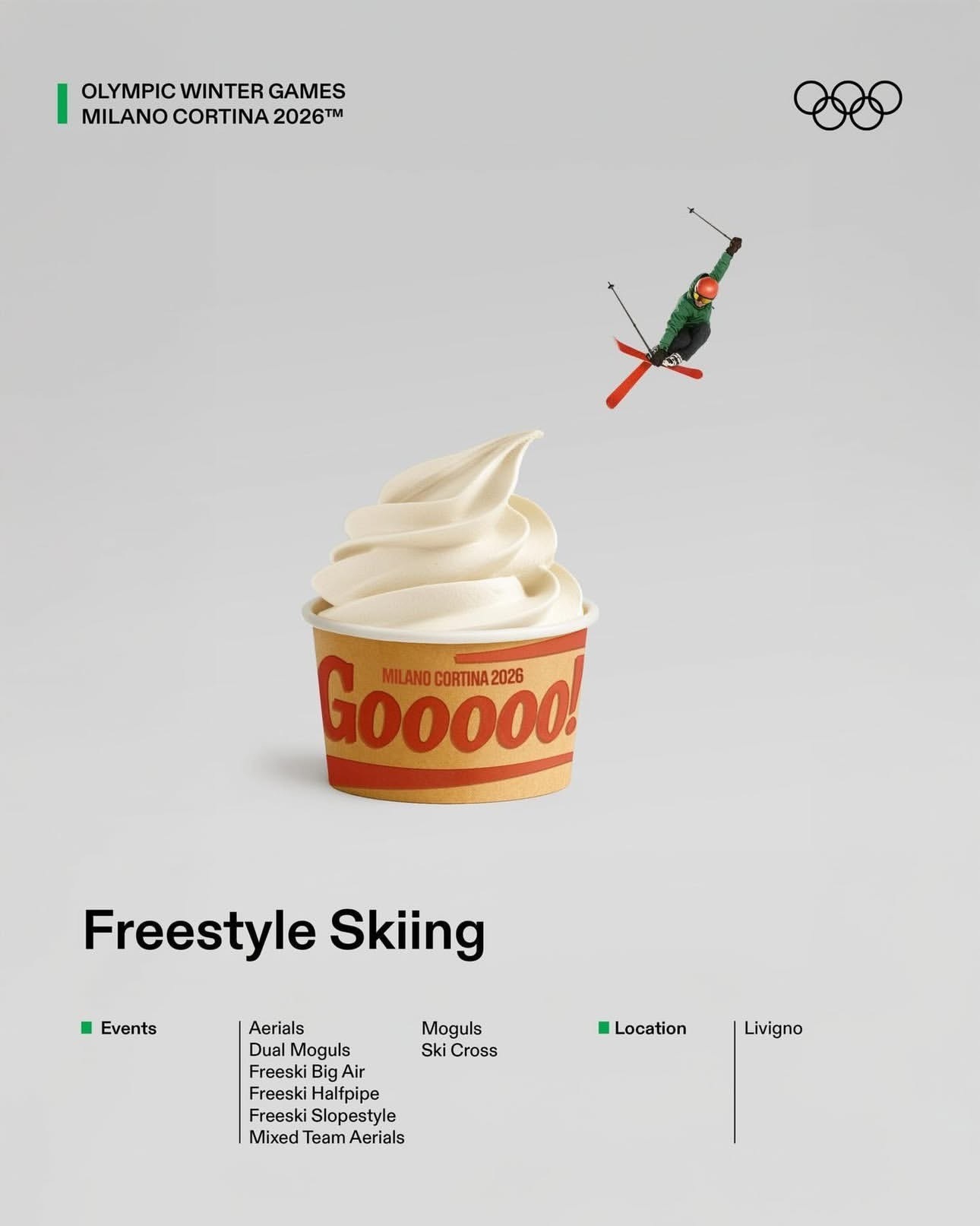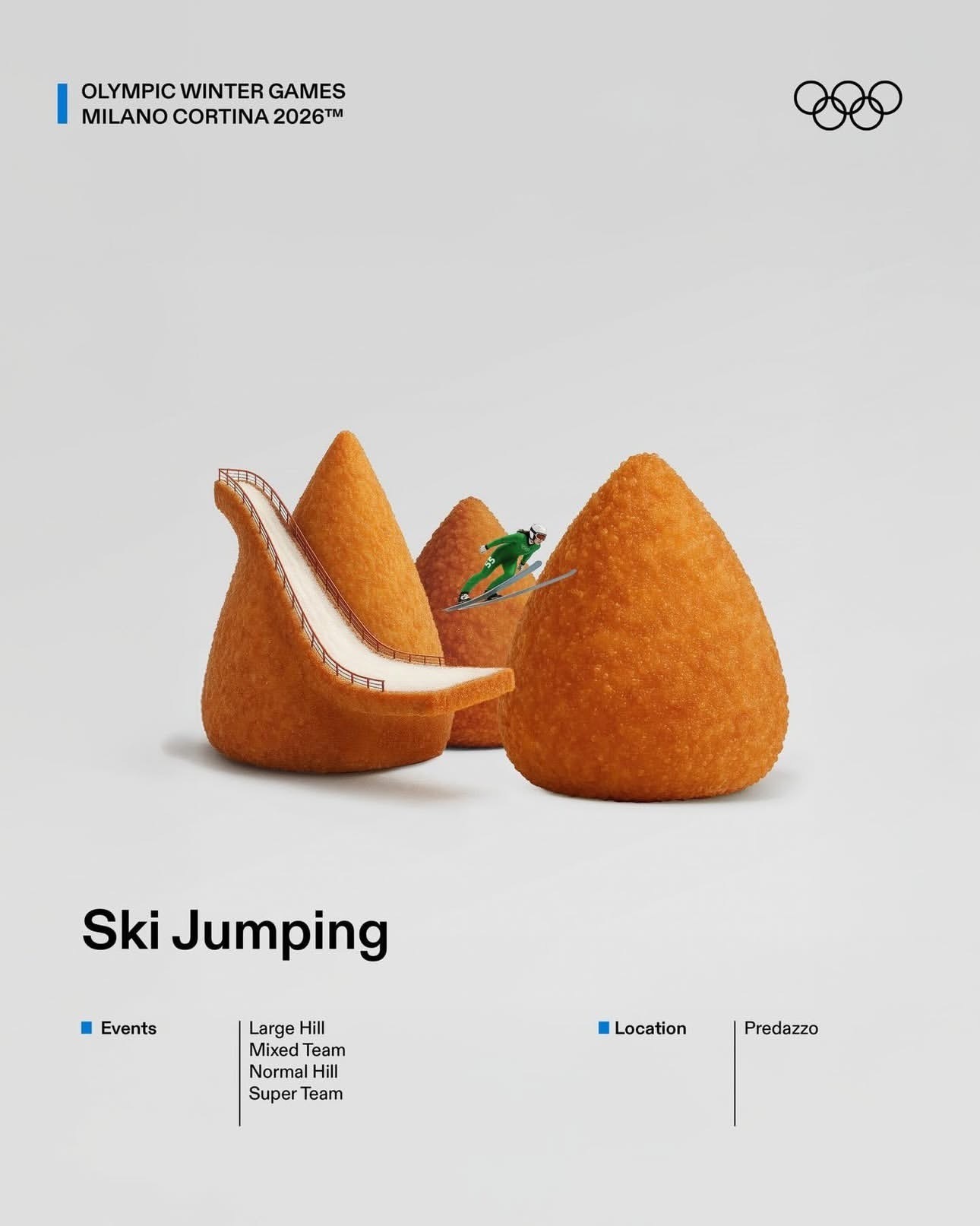 一组米兰冬奥会项目海报,融合了意大利美食元素,养眼又涨知识。