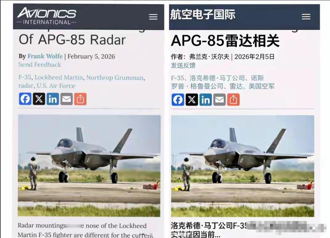 中方限制稀土的威力出来了!新交付美军F-35被曝没有安装雷达,美媒体一片哗然! 想象一下,当你打开一架造价上亿美元的F-35隐身战机的机头雷达罩,期待看到那是人类工业皇冠上的明珠——AN/APG-85有源相控阵雷达时,映入眼帘的却是一堆冰冷、粗糙的配重铁块和混凝土。 这听起来像是地摊文学里的荒诞段子,但在这个2026年的1月,它是发生在大洋彼岸最真实的黑色幽默。 洛克希德·马丁公司的生产线不敢停,也不能停。为了维持交付数据,他们不得不把这些刚刚下线的“五代机”推向停机坪。 因为缺少核心的雷达组件,为了保证飞机在高速飞行时的物理重心平衡,工程师们只能在原本属于高精尖电子设备的舱位里,塞进死沉死沉的配重物。 这一幕,彻底击碎了美媒的心理防线。原本预定要在空中通过态势感知碾压对手的“天空猎手”,此刻变成了一群昂贵的、甚至还需要“导盲犬”领路的“瞎子”。 这并不是简单的供应链拥堵。如果你把目光从宏大的机身移开,拿显微镜去审视那些缺失的雷达模块,你会发现这是一场关于元素周期表的战争。 那款代号AN/APG-85的新型雷达,之所以被称为“战力倍增器”,物理基础依赖于氮化镓(GaN)技术和高性能稀土永磁体。这些听起来晦涩的名词——钕、镝、铽,是现代工业真正的血液。 在这个微观世界里,美国人撞上了一堵墙。 早在2023年,太平洋西岸就已经收紧了镓和锗的出口阀门。时光流转至2024年,中重稀土出口审核力度再度提升。相关部门进一步收紧审核标准,为资源合理利用与战略储备筑牢防线。这两记重拳的余波,终于在今天这个时间点,精准地打在了美军的软肋上。 美国人手里有图纸,甚至自家地底下也有矿,但那只是“土”。要把“土”变成能装进雷达里的“宝”,需要极其复杂的精炼和提纯工艺。 在全球范围内,这项工艺的产能绝大部分被中国稳稳掌控。数据显示,超过90%的产能都在中国手中,彰显着中国在该工艺领域的主导地位。 美军内部的报告已经不再遮掩:想要重建这套从开采到精炼的完整产业链,哪怕砸下海量的资金,起步时间也是10年。 这意味着,在2027年——也就是目前乐观估计的雷达交付时间点之前,这批F-35都将处于一种极其尴尬的“裸奔”状态。 更要命的是,这种工业上的溃败直接投射到了战术层面。 没有雷达的F-35并不是不能飞,但它们必须依赖数据链,像盲人抓着绳子一样,紧紧跟在那些装备了旧款雷达的友机后面,“蹭”别人的信号来感知战场。 你可以想象一下那个画面:一旦作为“导盲犬”的领航机被击落,或者敌方实施了高强度的电子干扰切断了数据链,这群造价高昂的战机瞬间就会变成空中的活靶子。 更有意思的是,这种断供制造了一种奇特的“阶级差异”。 美国的盟友们拿到手的,可能是虽然旧一点、但功能完整的飞机。而美军本土部队,却不得不充当这一批“断供试验品”的接收者,开着塞满铁块的飞机在本土训练。 这也难怪美国国内的军迷圈炸了锅,直言自己的空军成了“二等兵”。 如果把视角拉高,放在整个亚太的棋盘上,这种对比会更加残酷。 就在洛克希德·马丁为了配重铁块焦头烂额的时候,海的这一边,歼-20正搭载着成熟的、满血版的有源相控阵雷达,处于产能爬坡的快车道上。 一增一减,一进一退。曾令美军数十年引以为豪的“技术代差”优势,正被冰冷的物理现实残酷且决然地消解,曾经的傲人资本,在现实面前,逐渐失去往昔的光彩。 美国人曾经以为,可以通过技术封锁和“去中国化”来卡住别人的脖子。然而,这一记回旋镖在空中盘旋数载后,竟毫不留情地、结结实实地砸回了自己脑门,恰似命运无情的回马枪,让人猝不及防。 这不仅仅是雷达的问题。从导弹的导引头,到电动推进系统,再到量子通信组件,任何涉及“高敏、精密”的领域,都悬着同一把达摩克利斯之剑。 这场发生在2026年初的“雷达门”,给全球上了一堂生动的工业课:真正的“大国重器”,不只是那些飞在天上、外形科幻的铁鸟,更是趴在地上的、你看不见的全产业链掌控力。 美国人还在等他们的雷达,而时间,显然不在他们那边。 参考资料: APG-85雷达相关.--航空电子国际