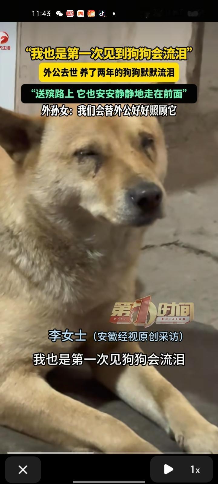 2月6日,永州市江华县。李女士分享一段视频,这只小土狗是外公两年前买来的,那时外婆刚走。于是,小土狗成为外公最亲的伴。 如今外公去世了,小土狗一直守在旁边默默流泪,眼睛都红了,这可是第一次见狗狗会流泪,后来给它戴上白布。送殡路上,它安安静静走在前面,一步也没落下。小土狗是家里的一份子,往后会替外公好好照顾它。