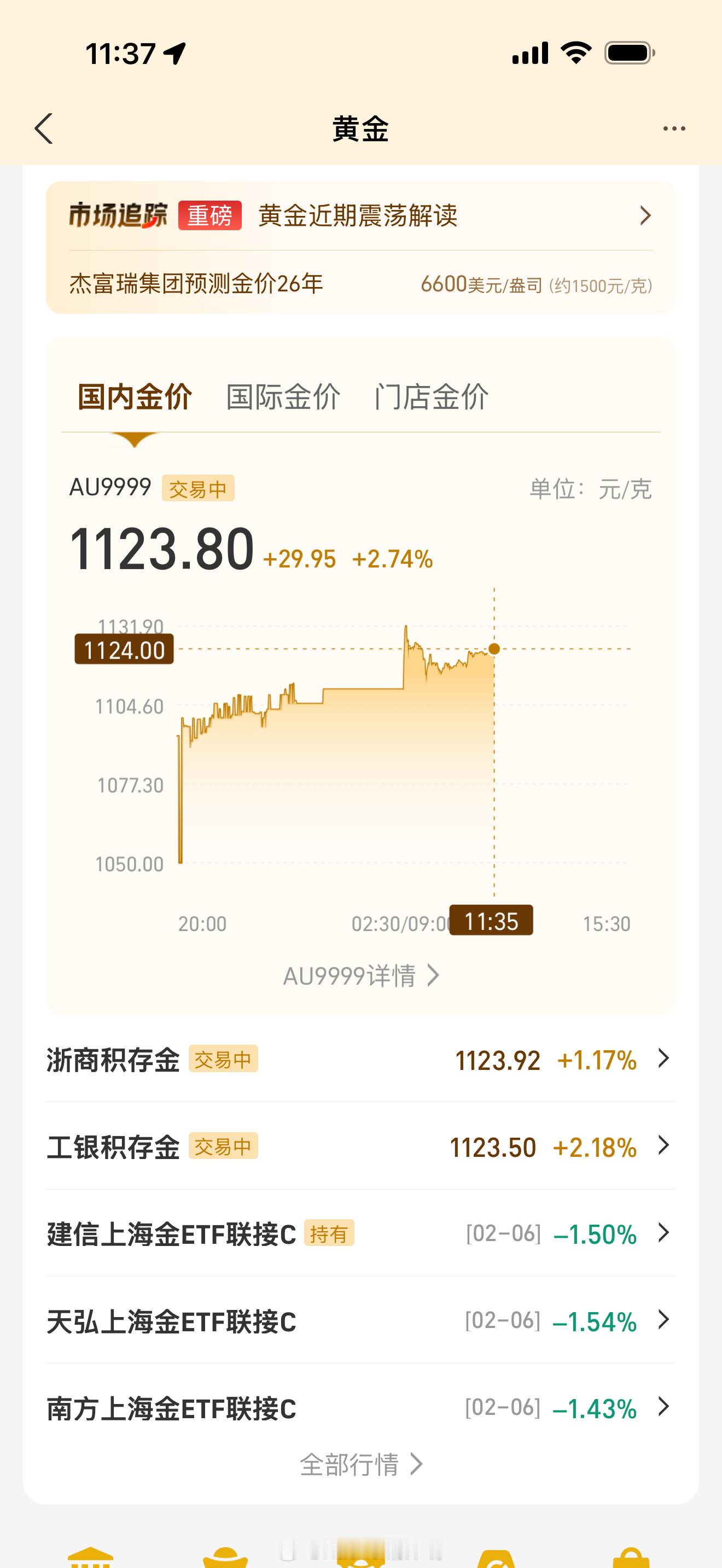 黄金黄金涨回1123.8了 国际黄金过5000了 年前还能涨回1200嘛