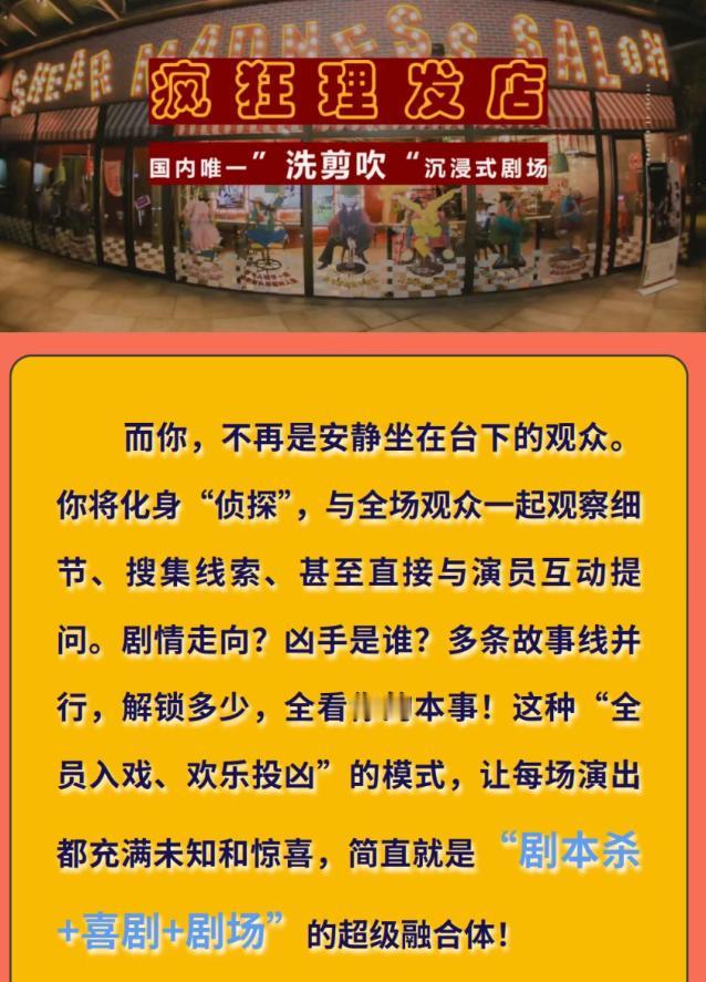 【开心麻花首度来南沙啦!】南沙国际会展中心除了搞怀旧音乐会之后现在又搞起剧场了!开建会展与广州开心麻花已达成合作意向,计划首次引进风靡全国的爆款沉浸式喜剧《疯狂理发店》。预计将于3月6日至7日,在南沙国际会展中心开演。 根据介绍,《疯狂理发店》不仅是一场简单的悬疑喜剧表演,而是一个沉浸式剧场,演员将和全场观众一起观察细节、搜集线索、甚至直接与演员互动提问。剧情走向?凶手是谁?多条故事线并行,解锁多少,全看你的本事!这种“全员入戏、欢乐投凶”的模式,让每场演出都充满未知和惊喜,简直就是 “剧本乐+喜剧+剧场”的超级融合体!