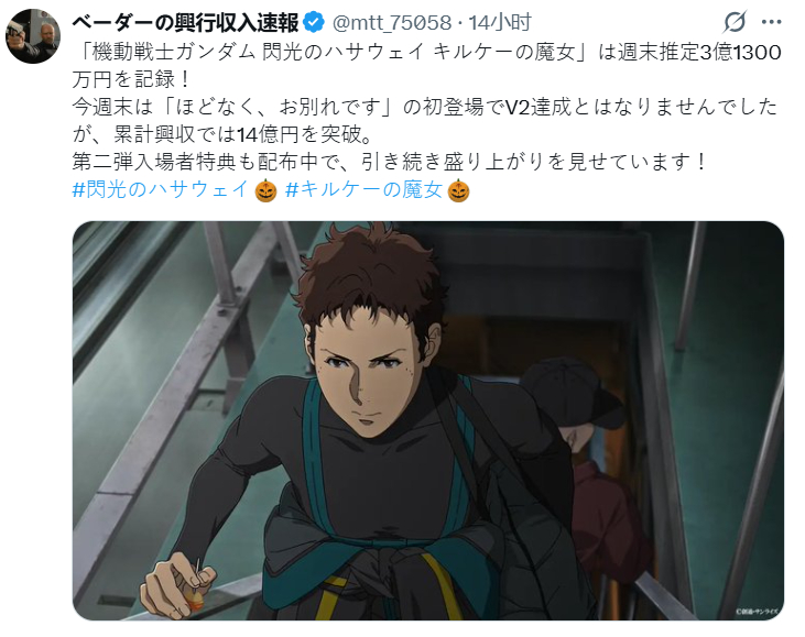 《闪光的哈萨维喀耳刻的魔女》上周末票房预计为3亿1300万日元高达