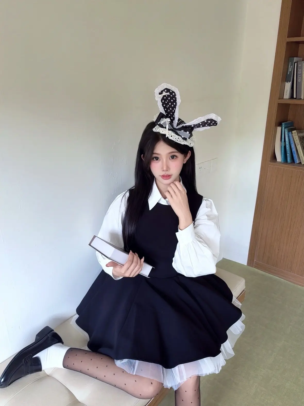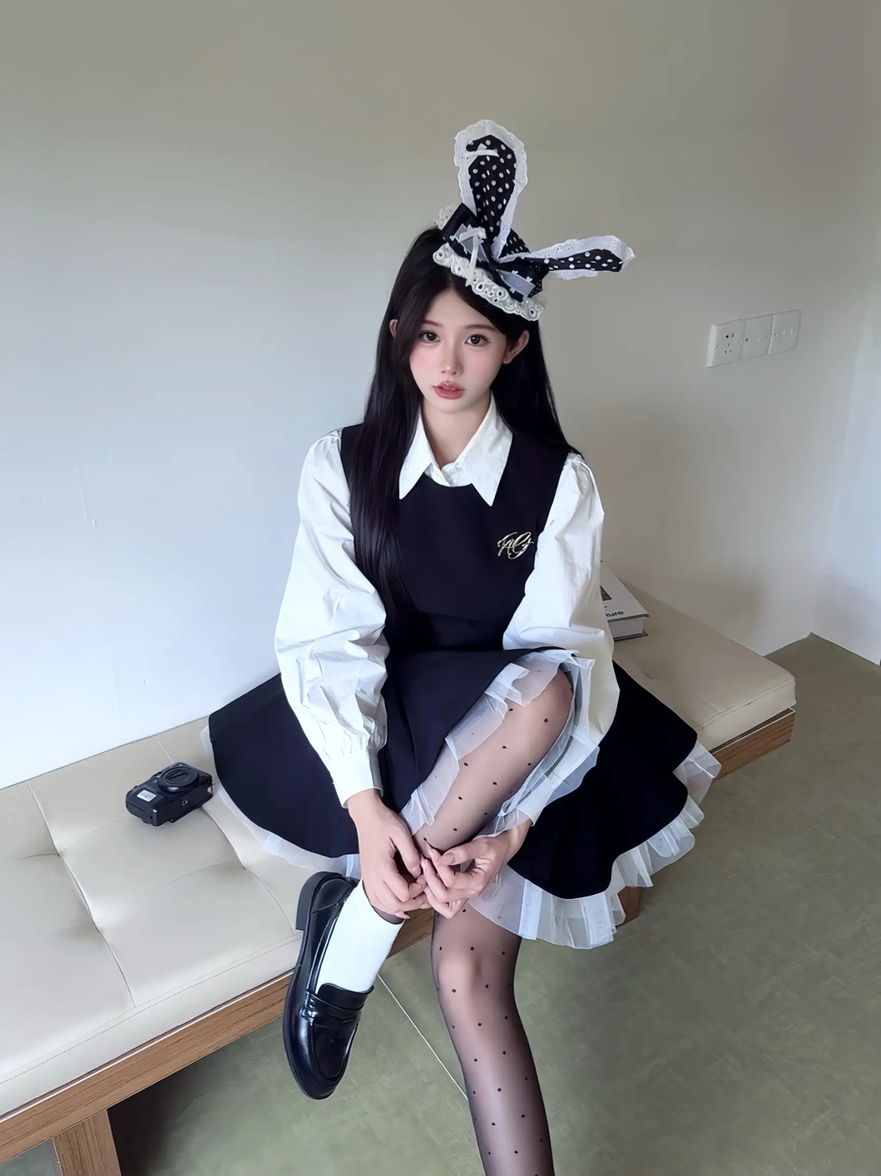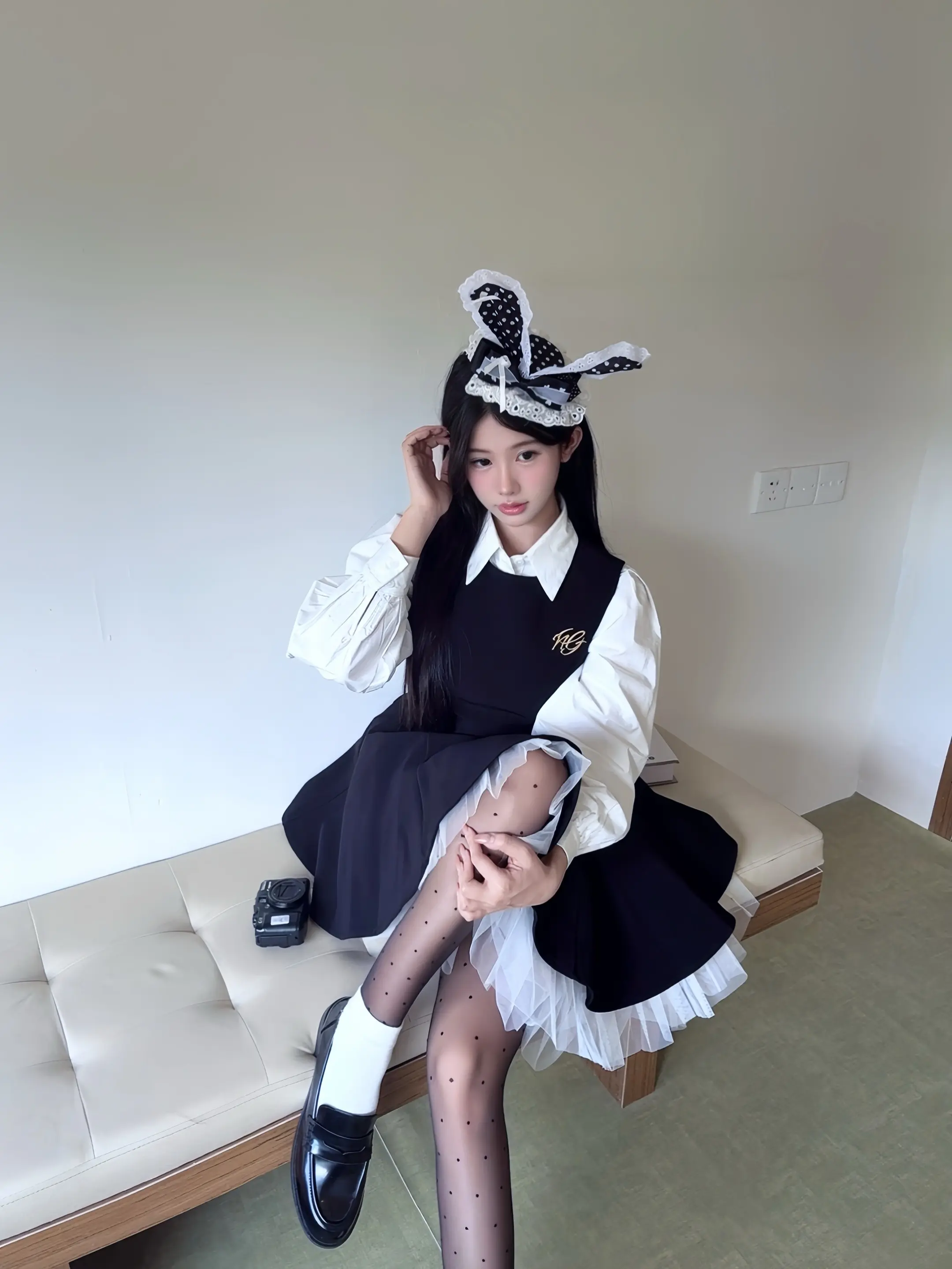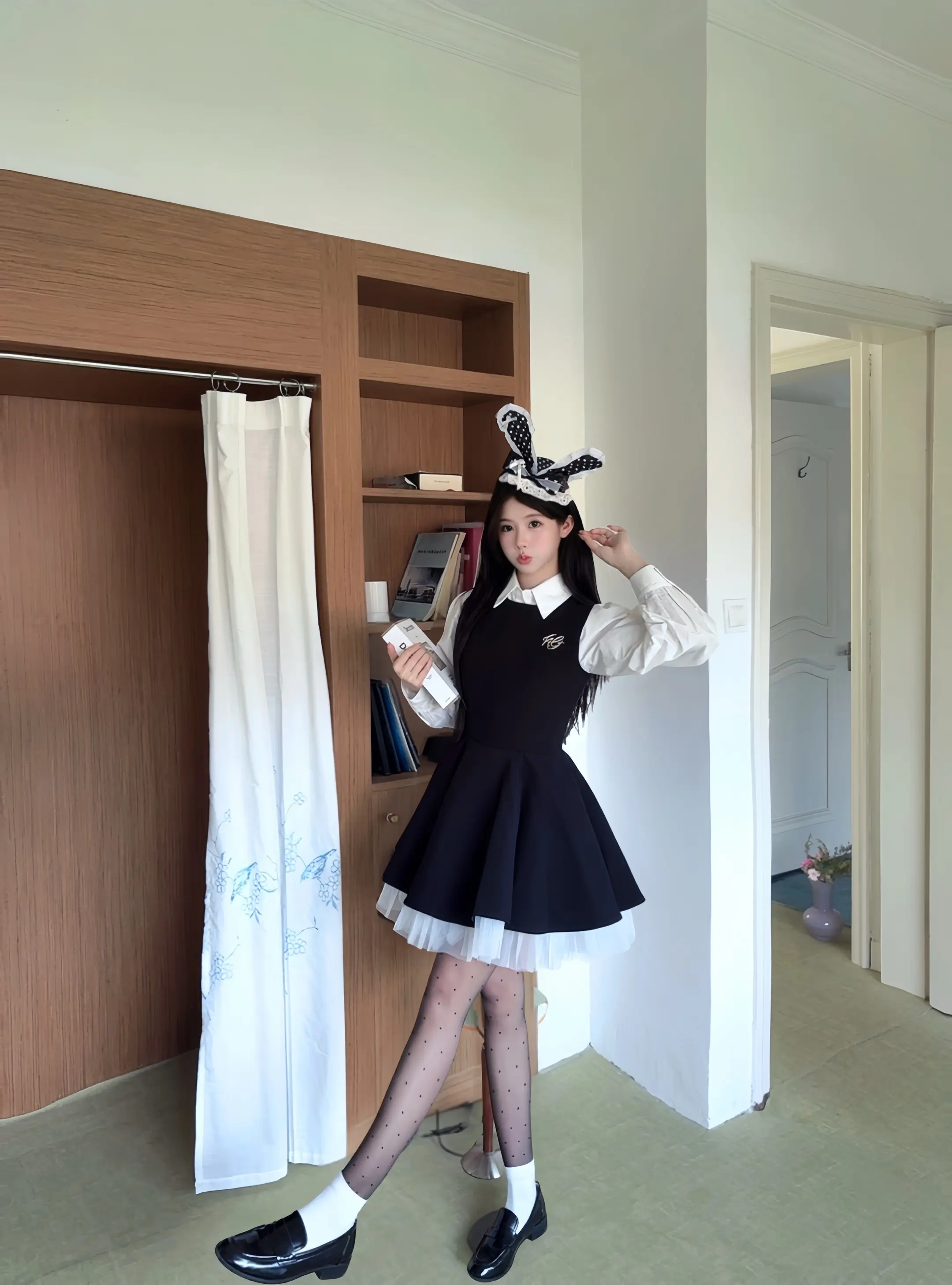 🐾" ◌◞ 🐈⬛ 𓂂ㅇ🎶•黑白格子蛋糕裙好美萌! 搭配小皮鞋日系感满满