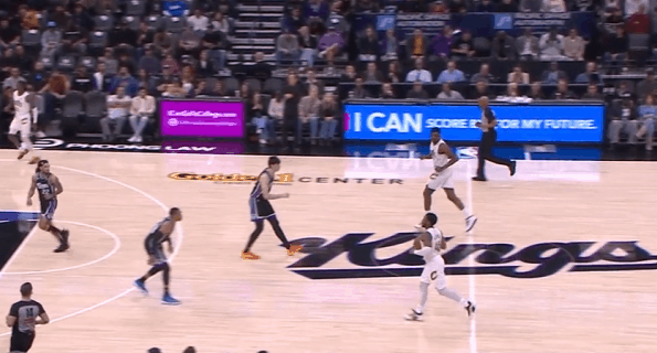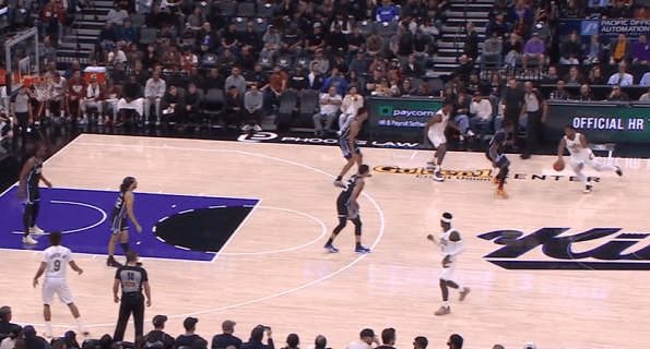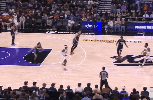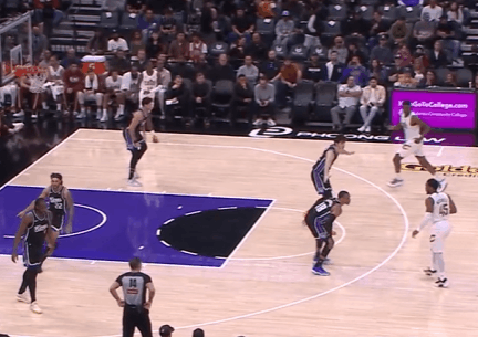 P7米切尔借拖布在后场的掩护推进至前场,随即和施罗德在边路发动“Get Flare”战术:接施罗德手递手回传的瞬间,加速启动突破直接过掉防守人,突破行进间躲过刷卡后直杀篮下迎着起跳护框的威少一记滞空反篮终结,稳稳打进。慢动作细节呈现:P8
