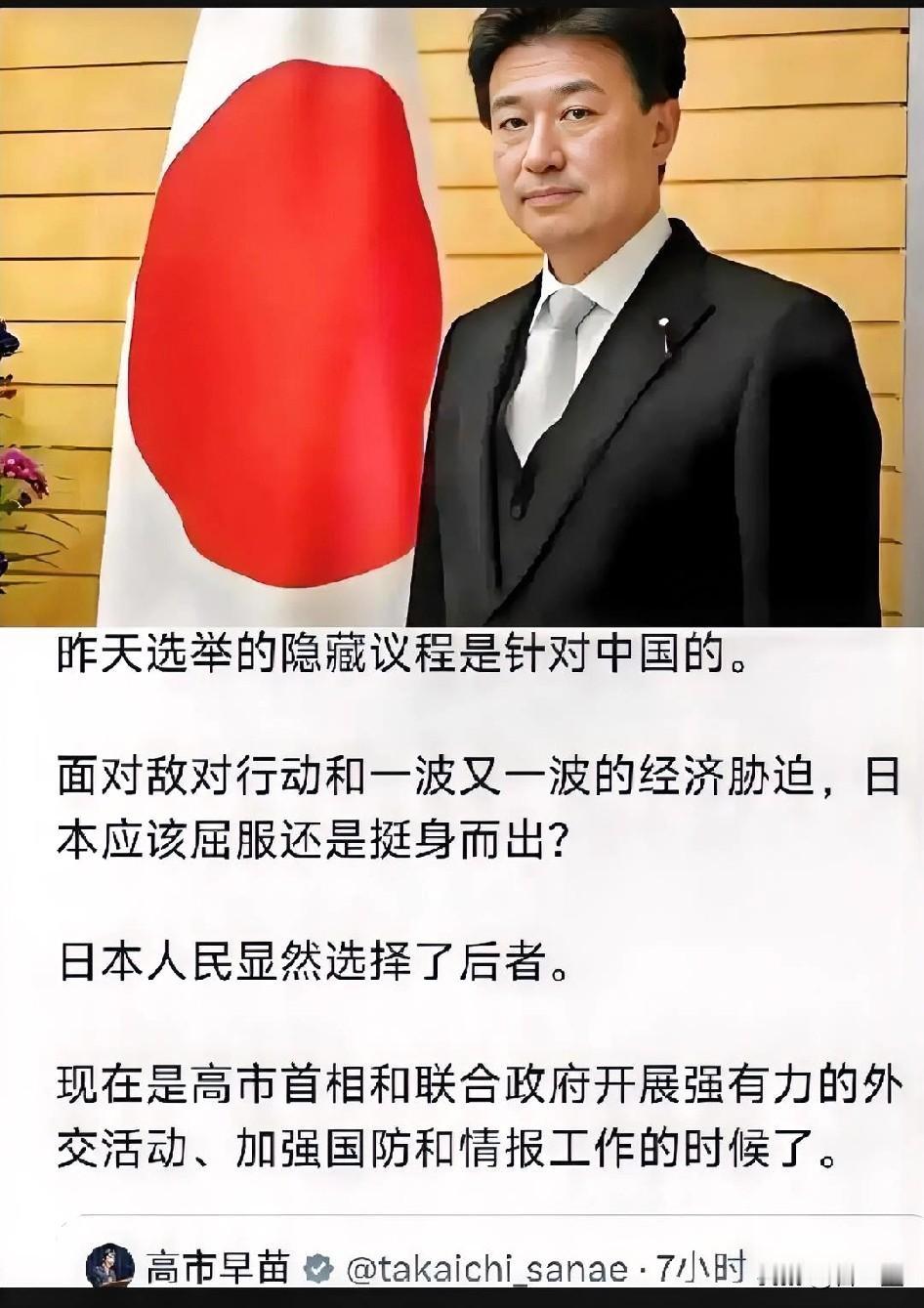 终于真相了, 日驻澳大利亚大使:这次选举就是针对中国的,面对其的经济胁迫,敌对行为,日本人民“站起来”了。 真不是善类,终于真相了,高市早苗大选获胜后,就连外交官都飘了,把野心放在桌子上谈。 纯属颠倒黑白,恶意栽赃,这些来自中国经济胁迫,敌对行为都是你们小日本自找的,是高市早苗挑衅中国在先,发涉台言论,说“台湾有事就是日本有事”,又不肯撤回。 这严重干涉中国内政,中国已经不是一百年前的中国,不是任人拿捏的软柿子了,任何势力干涉挑衅中国底线,都会遭到反击。 作为外交官山上信吾公然将本国大选包装成“对抗中国”的政治秀,并说“加强国防和情报”,军国主义要复苏。 如此制造对立,煽动仇外情绪,无视中日关系,只会加剧东亚紧张。 一山难容二虎,日本和中国世世代代不会友好这是事实,既然日本国民打造了战车并登上了战车,那么到时就别怪中国,不给其任何机会了。 毕竟历史上,中国没有侵略过日本,但日本搞过中国N次。 你们说日本社会已经做出了选择,接下来中国如何应对呢?