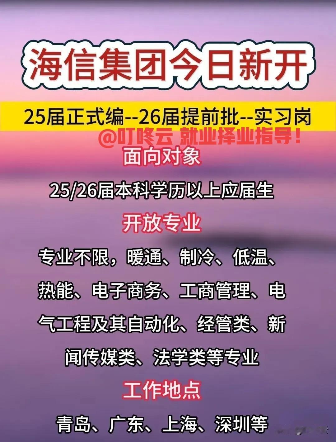 重量级招聘!推荐3家头部央国企26年招聘要求汇总合集!专科以上可以报名,需求专业见附图详解!岗位工作地点,济南、青岛、广东、深圳等多地可以选择!中国铁路、海信集团、中国重汽3家大型企业,春招好岗正式启动!速速收藏起来备用![点亮平安灯][点亮平安灯][礼物][礼物][爆竹][爆竹] 欢迎关注@叮咚云 将优先为粉丝职业规划指导,为你定制最适合的就业择业方案!欢迎留言交流讨论。[来看我][来看我] 免责声明:图片来自网络,仅供参考! 国企招聘 央国企招聘 央企招聘 央国企就业推荐