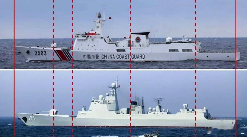 日网媒分析首次在钓鱼岛海域出现的中国海警2503舰,称它的船体是来自中国海军052D型驱逐舰的设计,在互联网上被称为052D型或501型海警舰。根据网上的一般信息,它的总长为150-155米,宽度为16米。 根据其舷号,它是排水量5000吨级舰。501型海警舰似乎接近052D型驱逐舰的首批次,将它与174合肥舰进行比较,很容易看出上层建筑进行了大规模改造,舰桥和桅杆向舰首方向前移。上层建筑侧面开了很多舷窗,被认为有助于居住性。配备一门H/PJ-26 76毫米速射舰炮和两座630式改型30毫米近防炮,类似重机枪的装备也可见于桅杆后方。桅杆配备了382型防空雷达,如果中国海军舰艇与海警之间建立数据链,将有助于军事行动中的防空搜索范围。烟囱排气口的位置几乎与052D型驱逐舰相同。烟囱下方发动机部件结构相同,可能会采用相同的结合柴油机和燃气轮机发动机的综合推进系统(CODOG系统)。直升机甲板比052D型驱逐舰的设计大得多。据认为501型海警舰是对日本海保黎明型和春光型巡视船的回应。