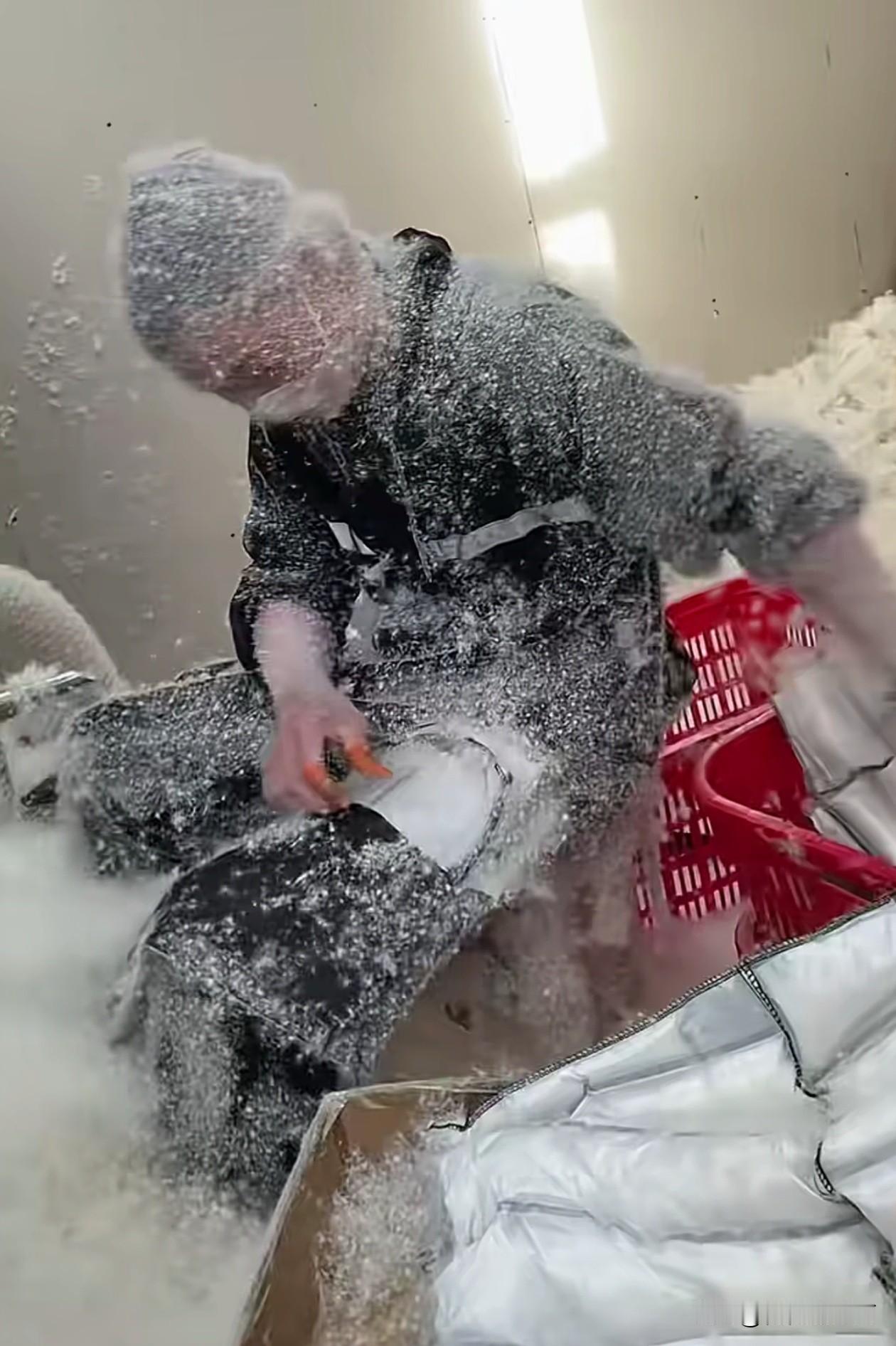 原来我们穿的羽绒服,都是工人在这样的环境中做出来的!不容易呀!羽绒服不暖和也不抱怨了,以后不买羽绒服了!