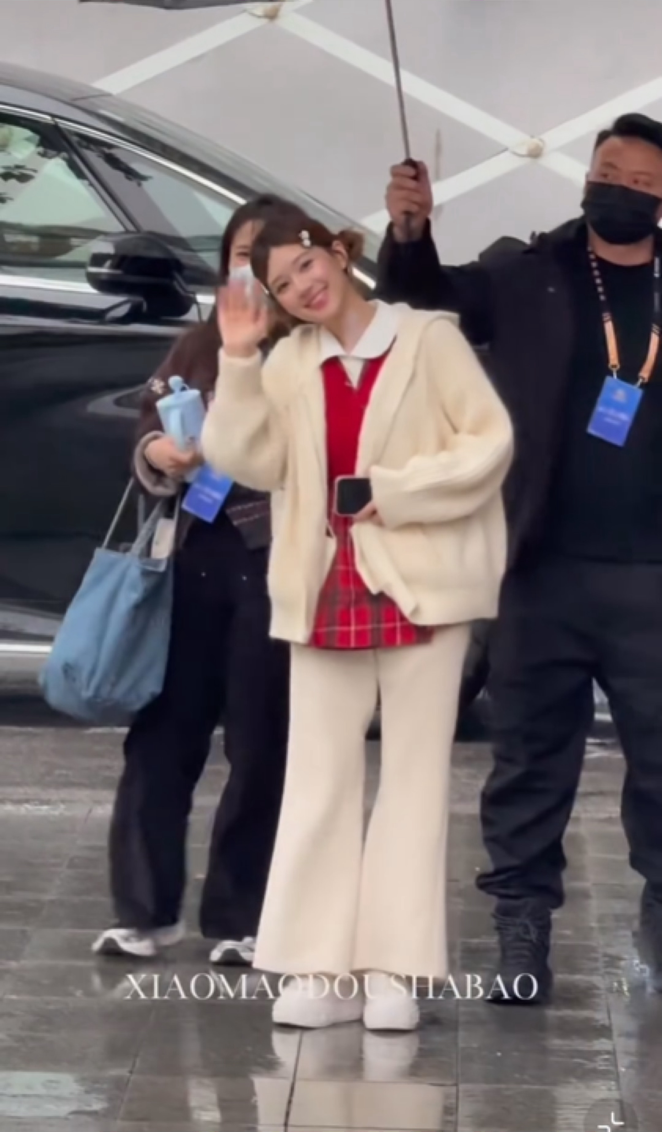 雨爱的秘密☔️大雨中打了很久招呼的也子🥺🥺周也白色碎花裙look 周也下雨也