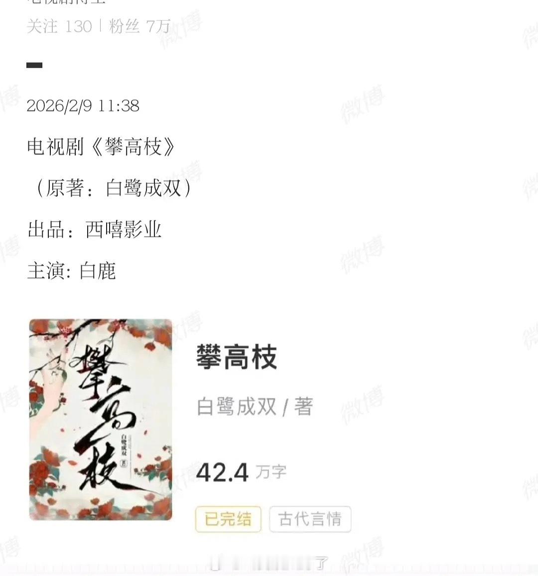 《攀高枝》这个饼是西嘻影业的呀?码到白鹿了?🤔