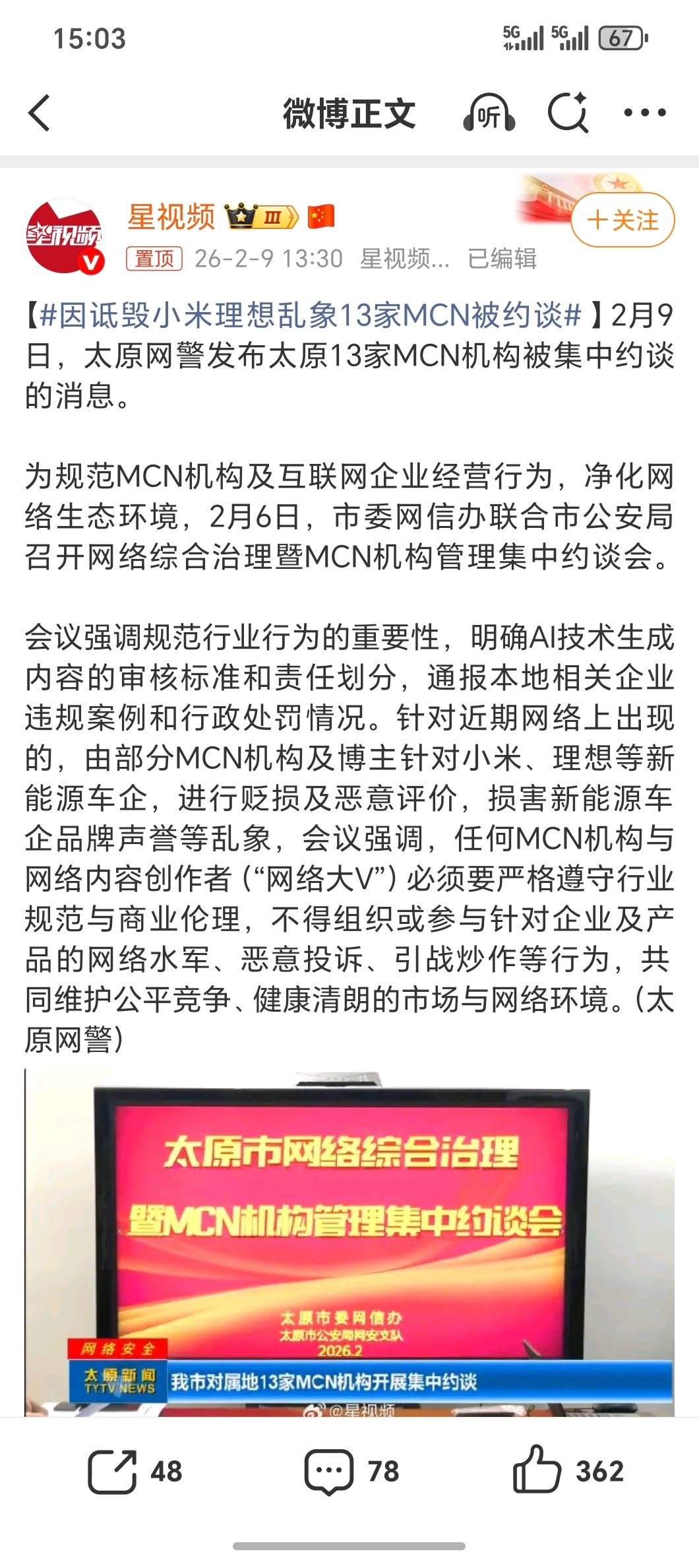 因诋毁小米理想乱象13家MCN被约谈我才知道更多黑稿除了有背后金主还有很多MCN就搞这种黑流量生意大量AI洗稿,断章取义,拼接平台又天生喜欢传播负面一个机构几千个账号就挣平台激励费给车企带来极大的损失,真的离谱
