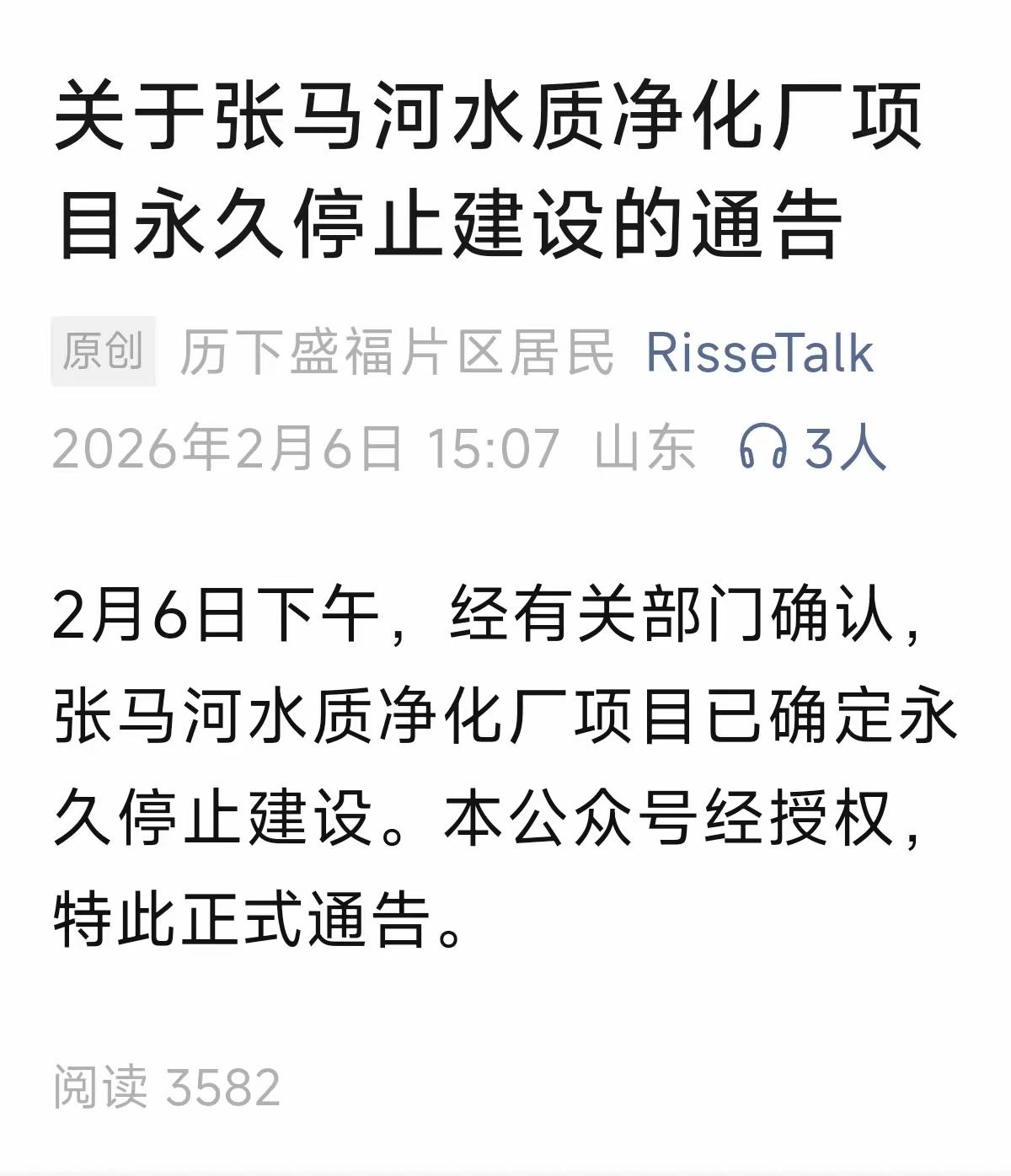 济南盛福片区的居民胜利了,盛福污水处理厂项目永久停止建设。 这个污水处理厂原本是打算建在cbd不远的地方的,毕竟主要是处理cbd片区的污水。但cbd片区的居民不愿意了,我们花高价买的房子,可不是要和污水处理厂做邻居的,于是纷纷反对,最后没建成。 然后这个污水处理厂也处理盛福那边的污水,刚好盛福那边有个空地闲置了好多年。于是计划建在盛福片区。结果盛福片区居民不满意了,就你cbd的金贵,让我们闻臭水味?也反对,现在也不建在盛福了。 那么问题来了,污水处理厂要建在哪里呢?这处理厂还真得建啊,要不然难以满足日益增长的污水处理需求。 估计下一步就是选址在胶济铁路北边了,虽然远点,但那地方小区少,空地多,反对意见也少,就是需要多修一些污水传输管道。