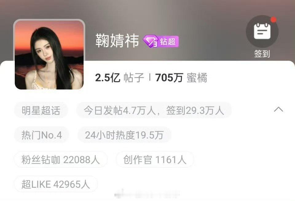 鞠婧祎解锁钻超3图标,是2026年首个钻3女星👍🏻