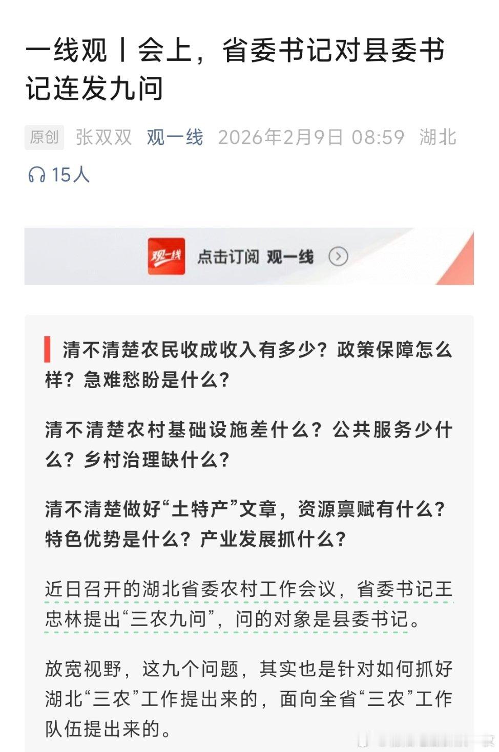 会上,湖北省委书记对县委书记连发九问。网页链接