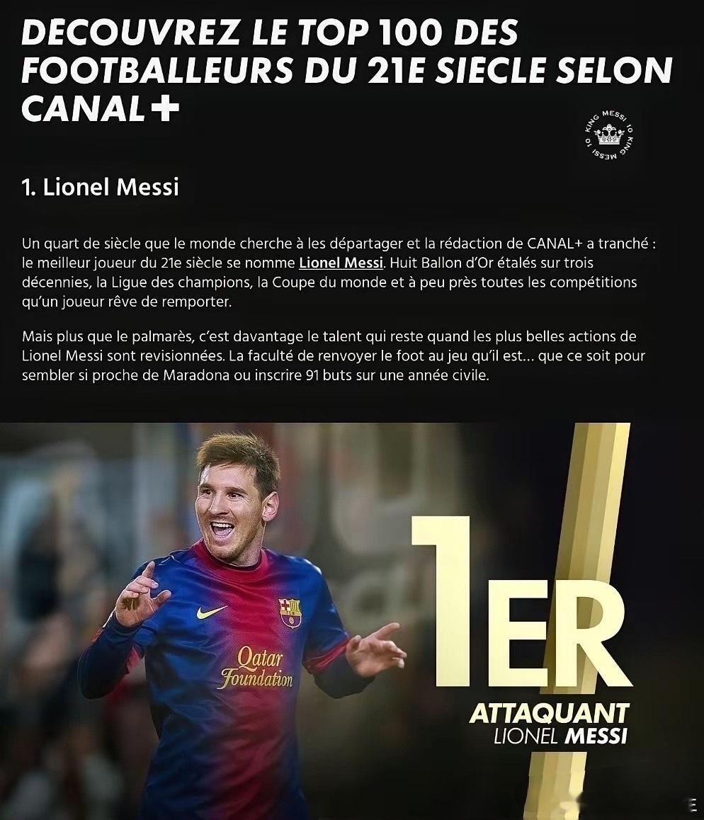 刚刚看到法国媒体CANAL+评选的21世纪最伟大百名球员,梅西毫无悬念地登顶了!🏆八座金球奖、欧冠、世界杯……这些荣誉已经足够辉煌,但更让人铭记的是他那如画般的精彩瞬间。梅西,他不仅仅是一个球员,更是一个让足球回归本质的艺术家。他的每一次触球,都仿佛在诉说着足球的故事,让人沉醉其中。这份榜单,实至名归!法媒评选21世纪百大球星梅西第一梅西C罗位列百大球星前二足球